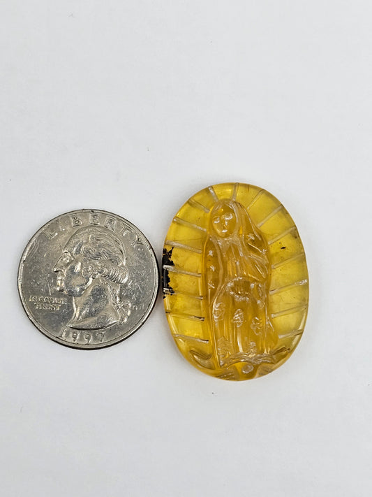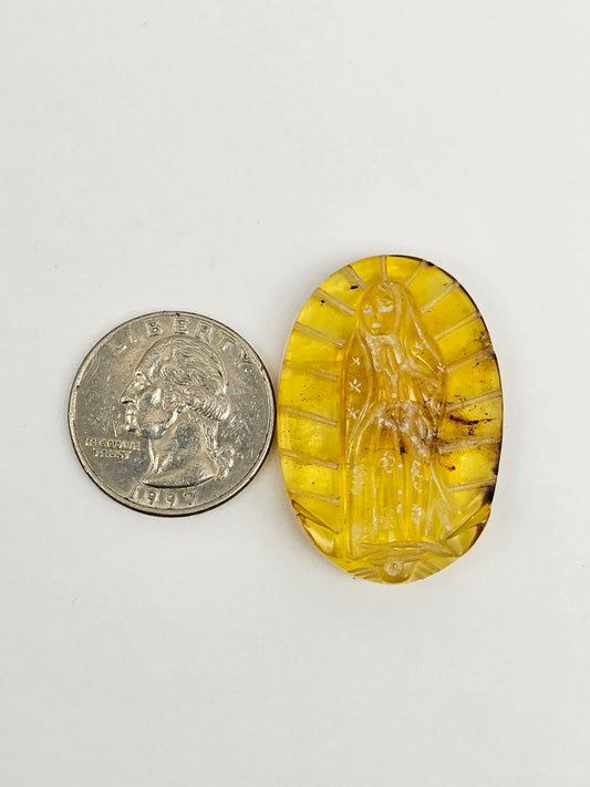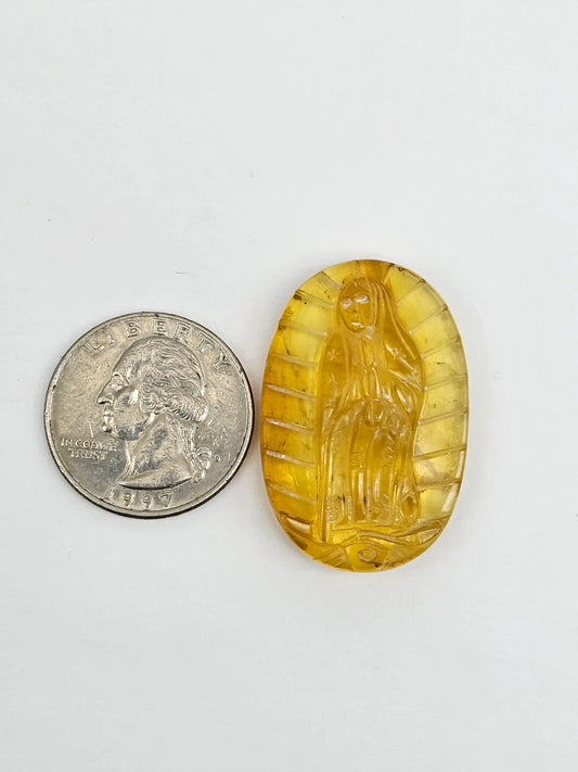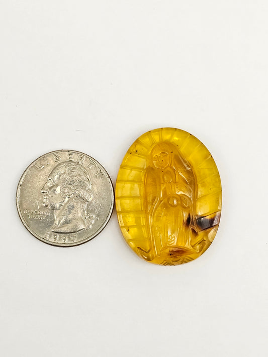 Amber authentic Virgin Mary carved cabochon large
