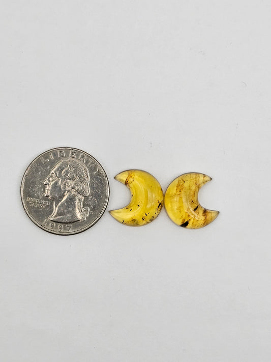 Amber authentic moon cabochon pair large