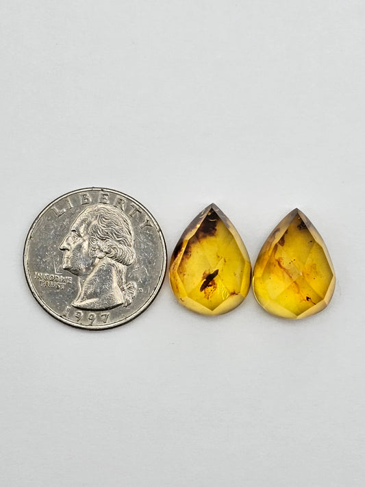 Amber faceted teardrop pair