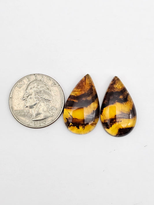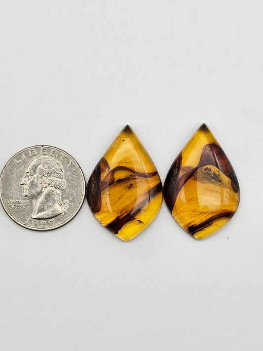 Sold outAmber authentic cabochon pair large