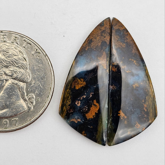 Sold outBlue opalized wood Cabochon Pair