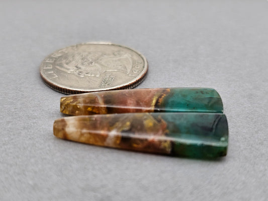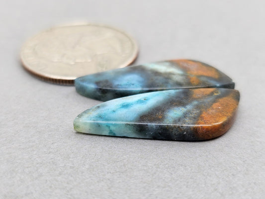 Blue opalized petrified wood Cabochon Pair