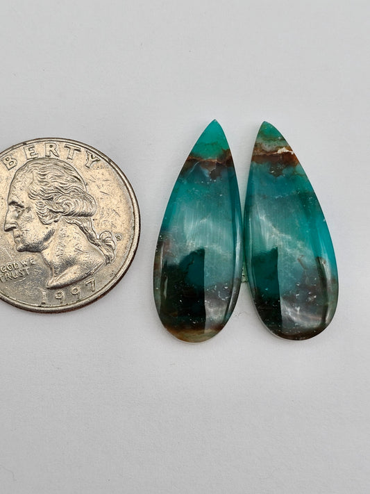 Chrysocolla Gemstone Cabochon Pair