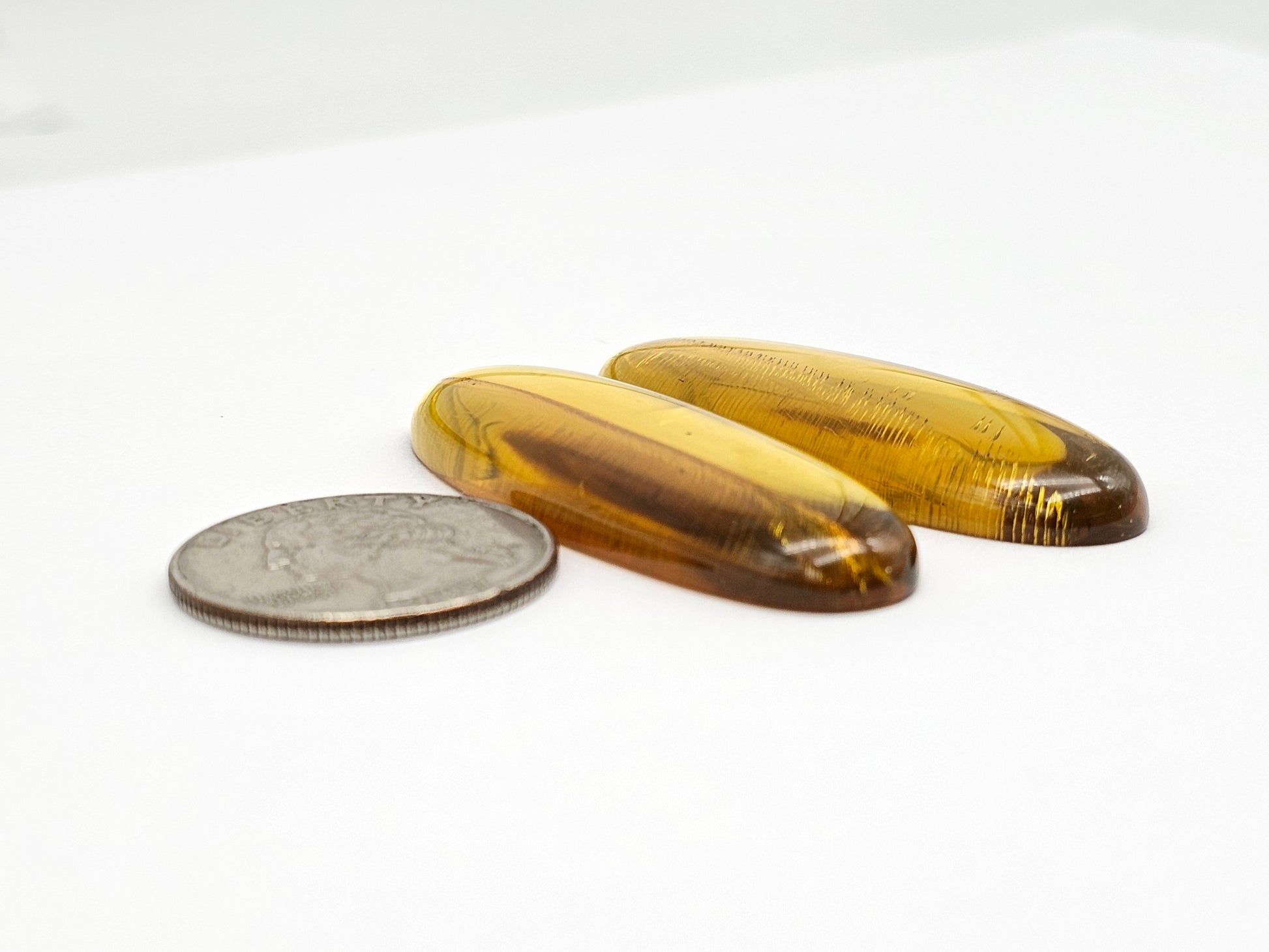This ancient amber is warm and radiates good energy. This larger amber cabochon pair is perfect for making earrings, pendants, or other custom creations.