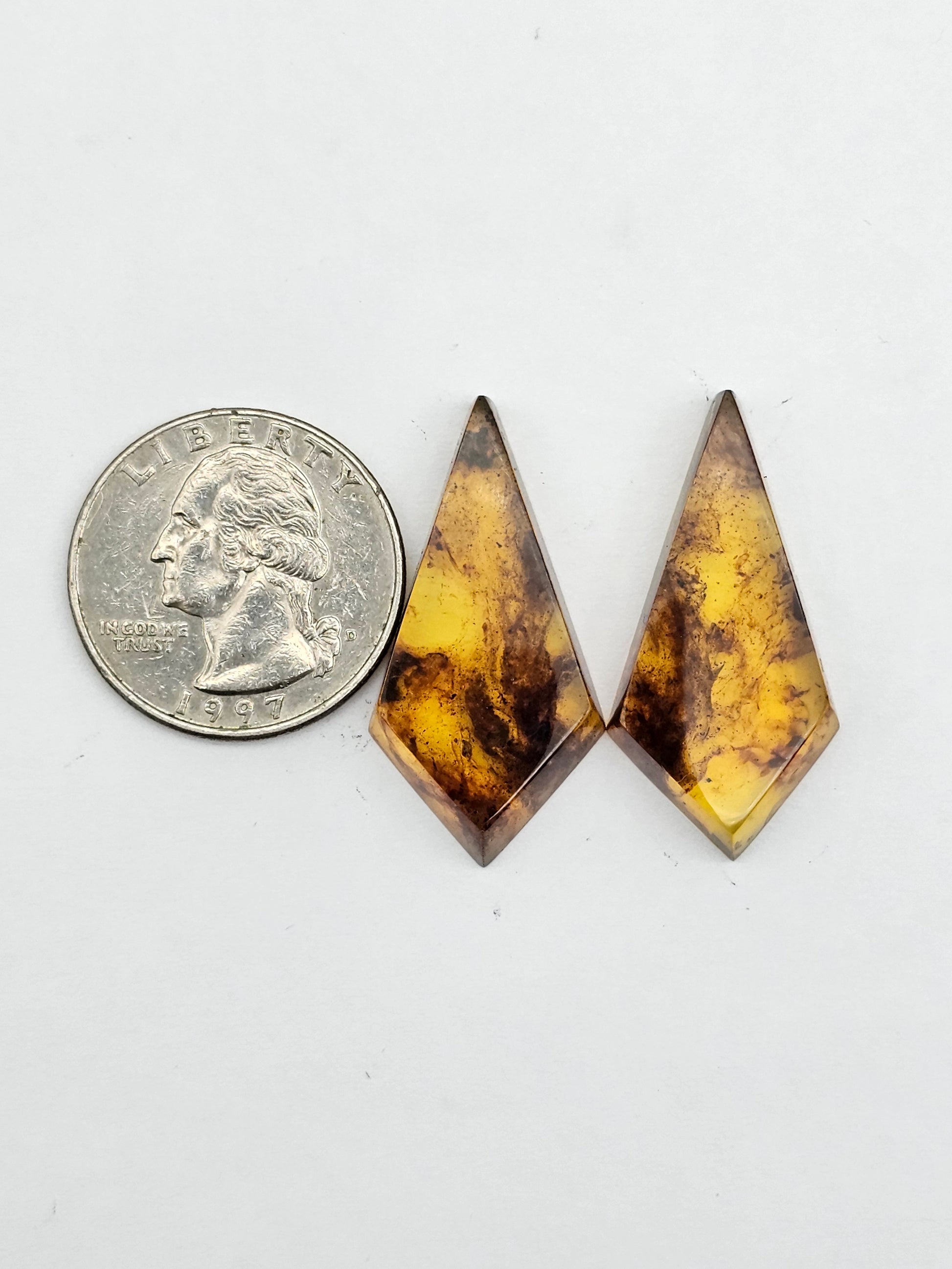This ancient amber is warm and radiates good energy. This larger amber cabochon pair is for perfect for making earrings, pendants, or other custom creations.