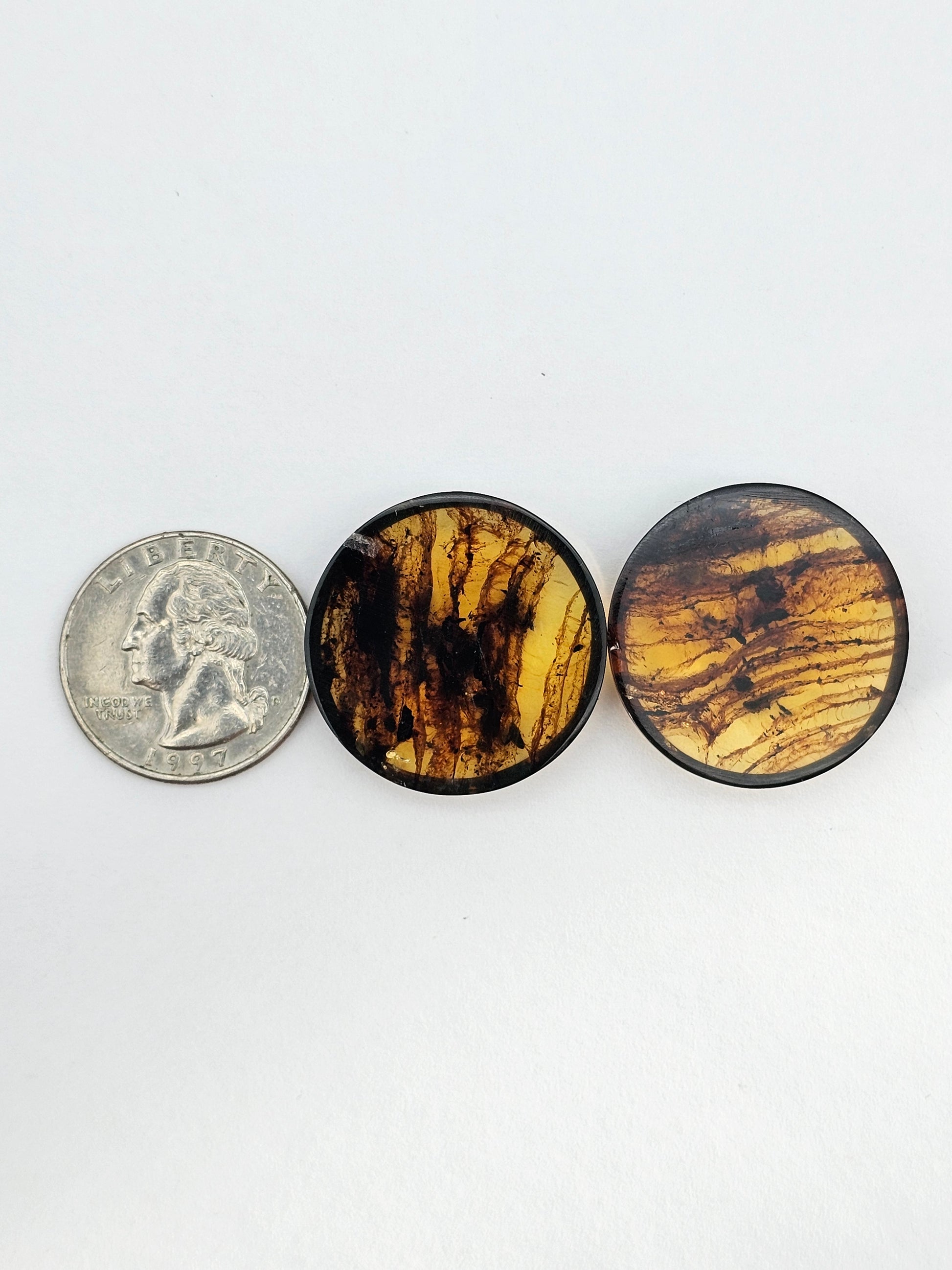 This ancient amber is warm and radiates good energy. This larger amber cabochon pair is perfect for making earrings, pendants, or other custom creations.