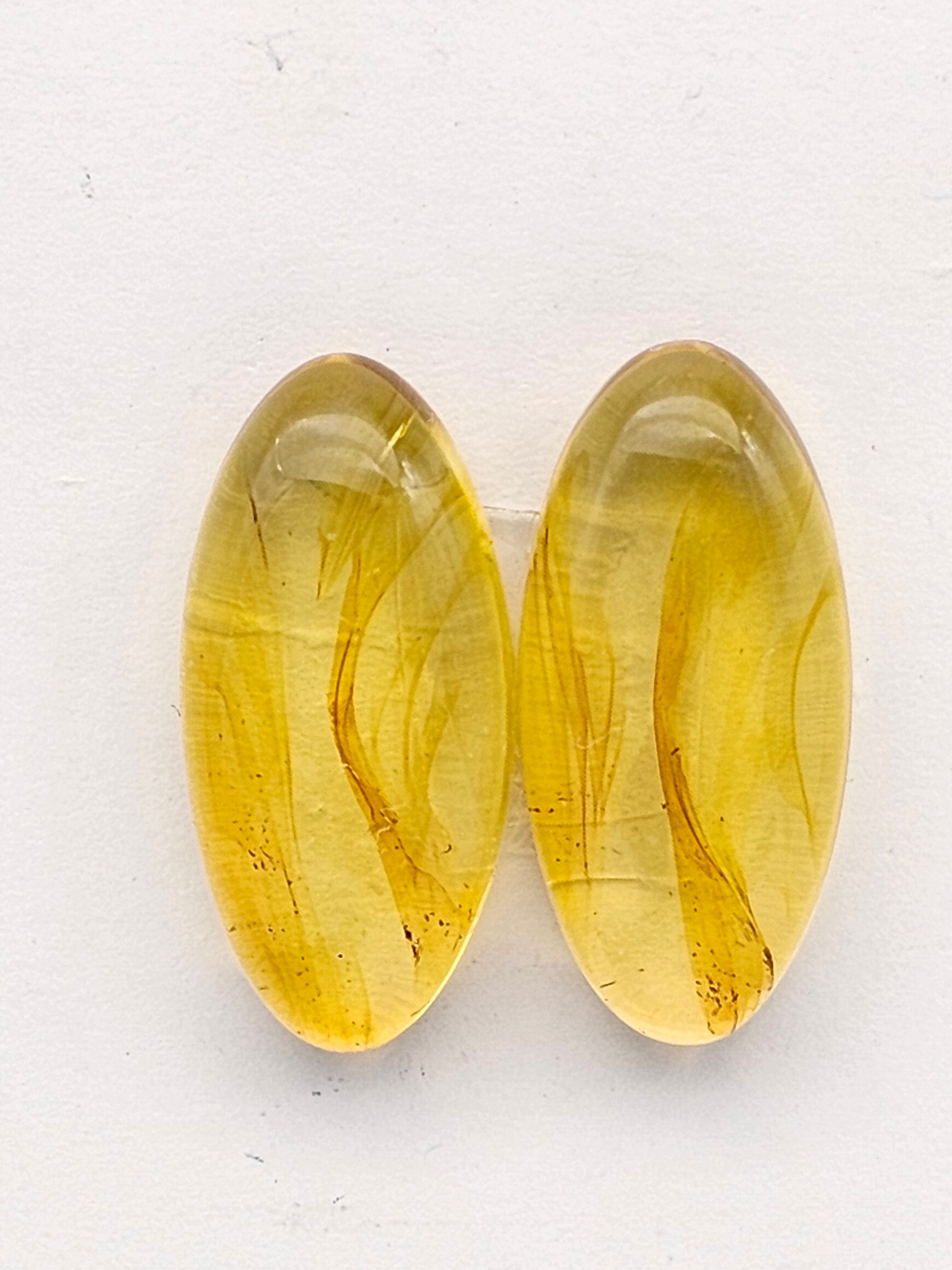 This ancient amber is warm and radiates good energy. This larger amber cabochon pair is for perfect for making earrings, pendants, or other custom creations.