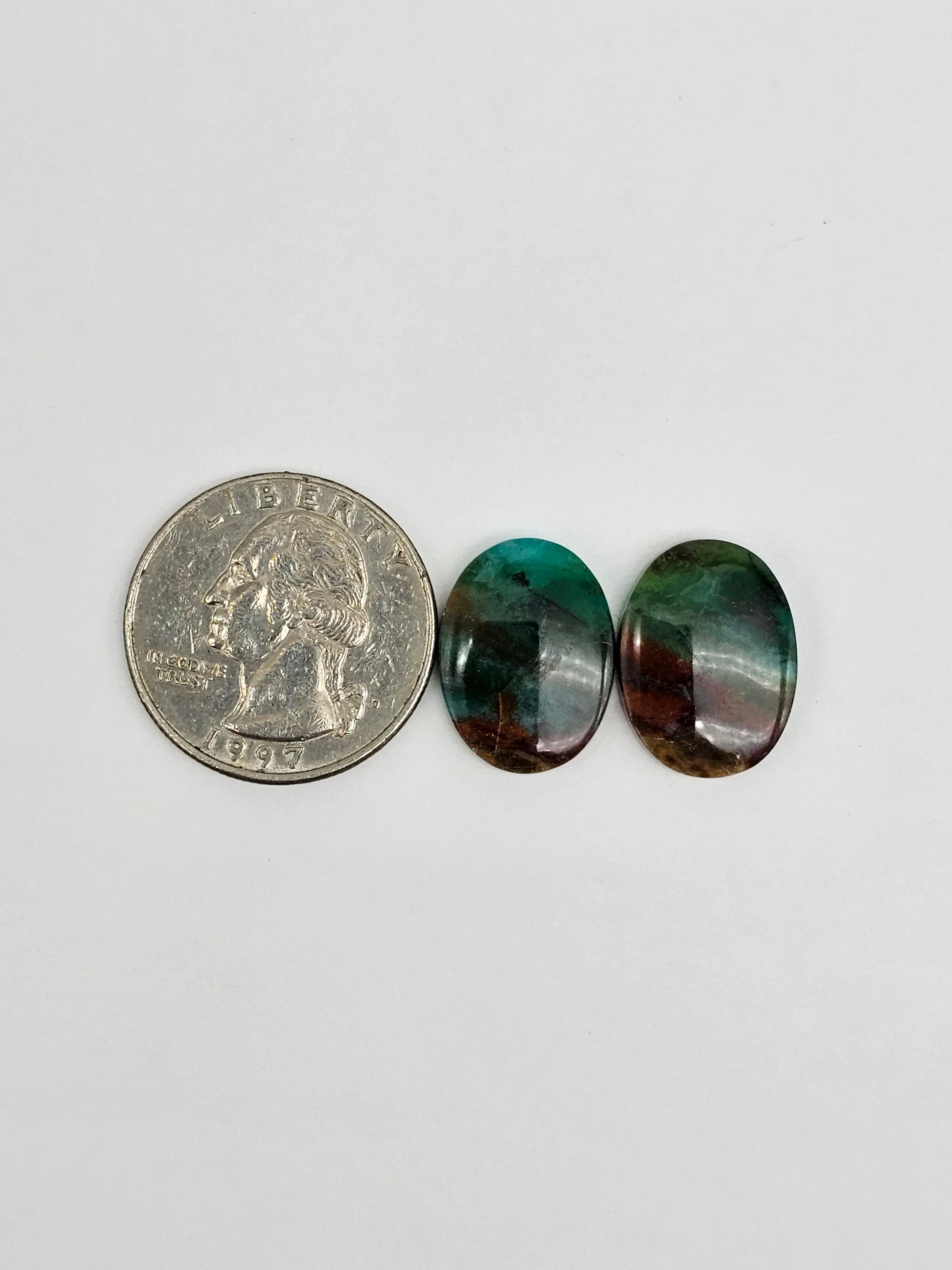 This stunning pair of Blue Opal Petrified Wood Cabochons showcases beautiful layers of soft blues, greens, and earthy tones. Their smooth, oval shape makes them perfect for crafting unique jewelry pieces like earrings or pendants. Each cabochon features distinct patterns that add character and charm to your collection. Enhance your designs with this captivating pair!