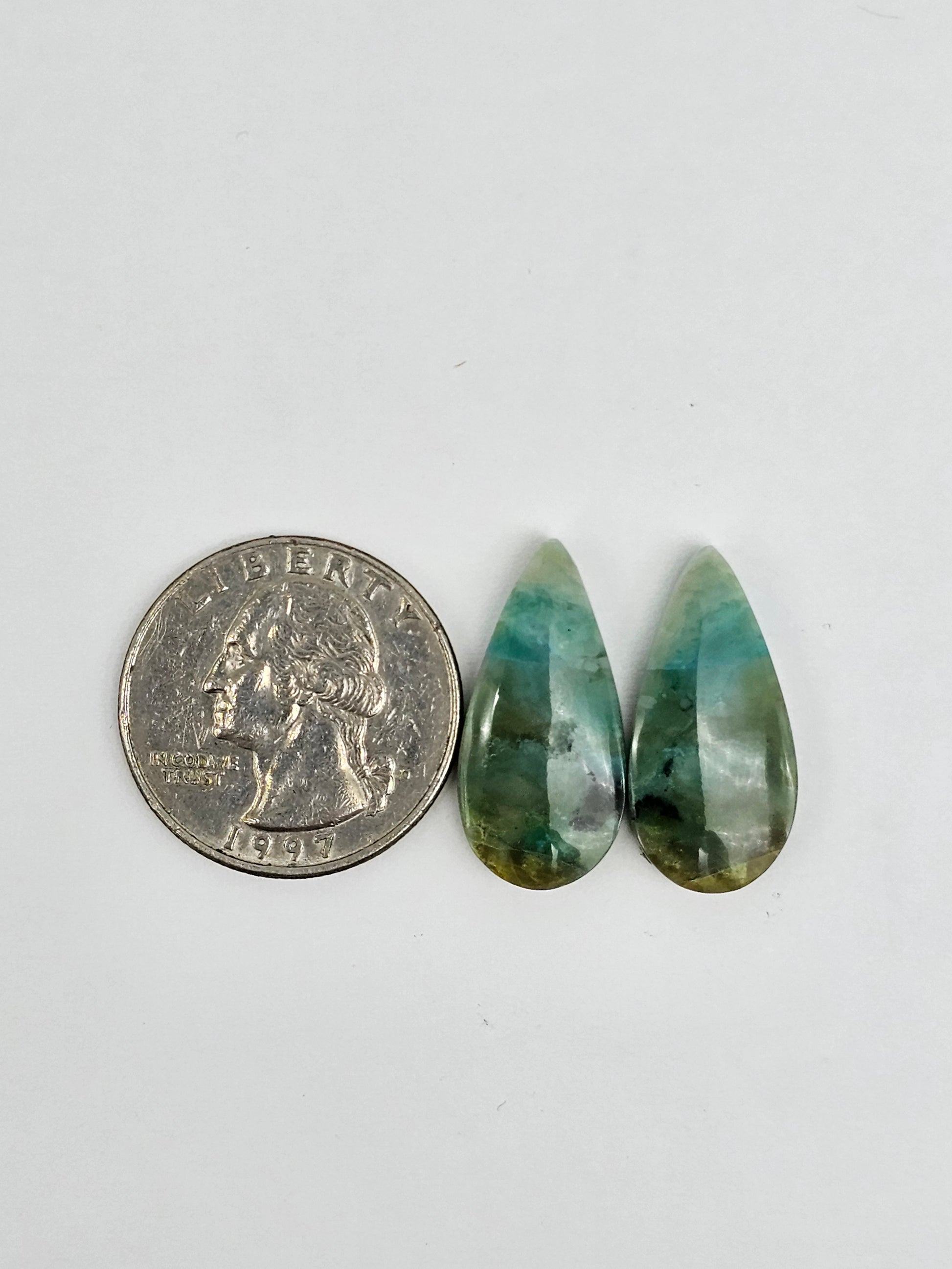 This stunning pair of Blue Opal Petrified Wood Cabochons showcases beautiful layers of soft blues, greens, and earthy tones. Their smooth, teardrop shape makes them perfect for crafting unique jewelry pieces like earrings or pendants. Each cabochon features distinct patterns that add character and charm to your collection. Enhance your designs with this captivating pair!