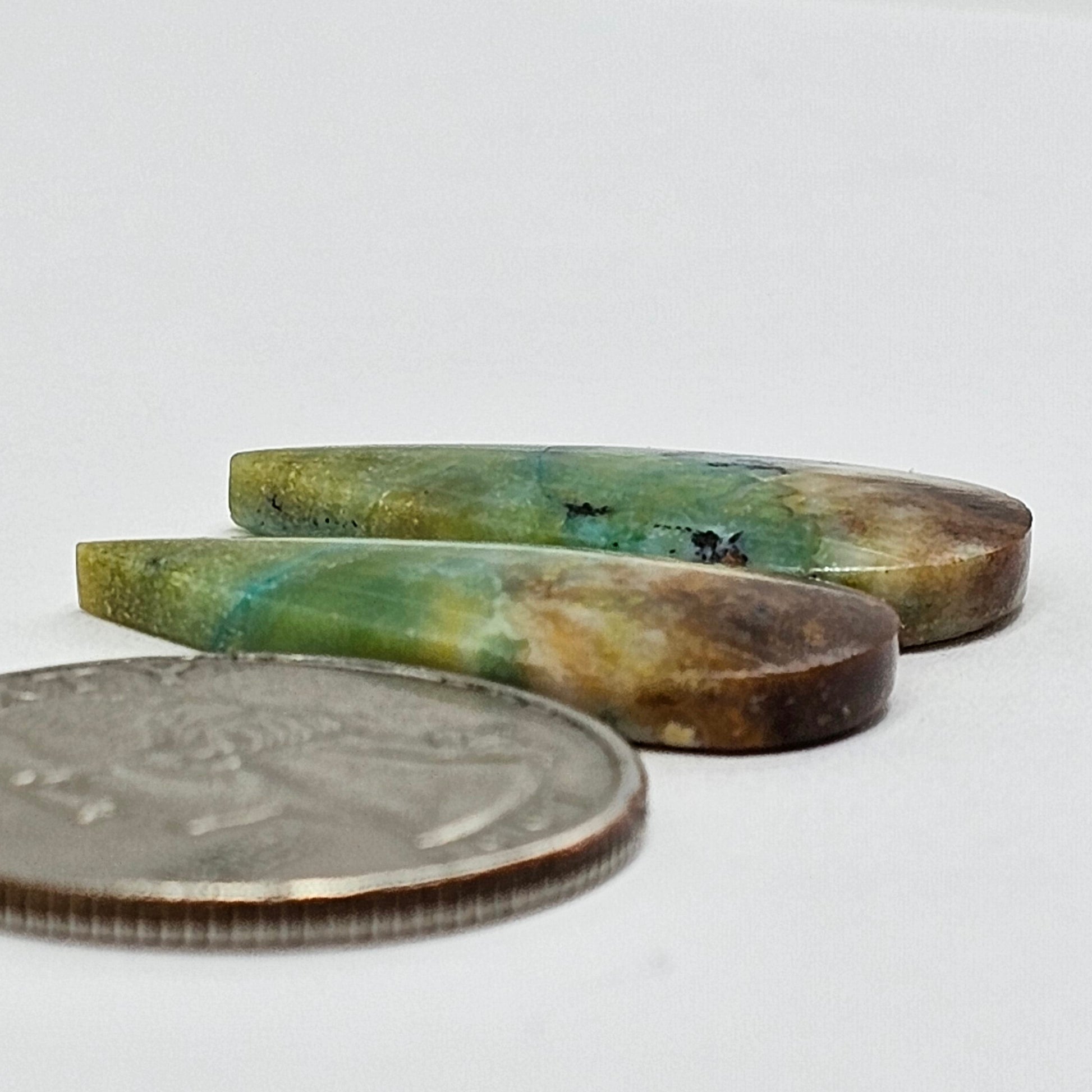 This stunning pair of Blue Opal Petrified Wood Cabochons showcases beautiful layers of soft blues, greens, and earthy tones. Their smooth, teardrop shape makes them perfect for crafting unique jewelry pieces like earrings or pendants. Each cabochon features distinct patterns that add character and charm to your collection. Enhance your designs with this captivating pair!