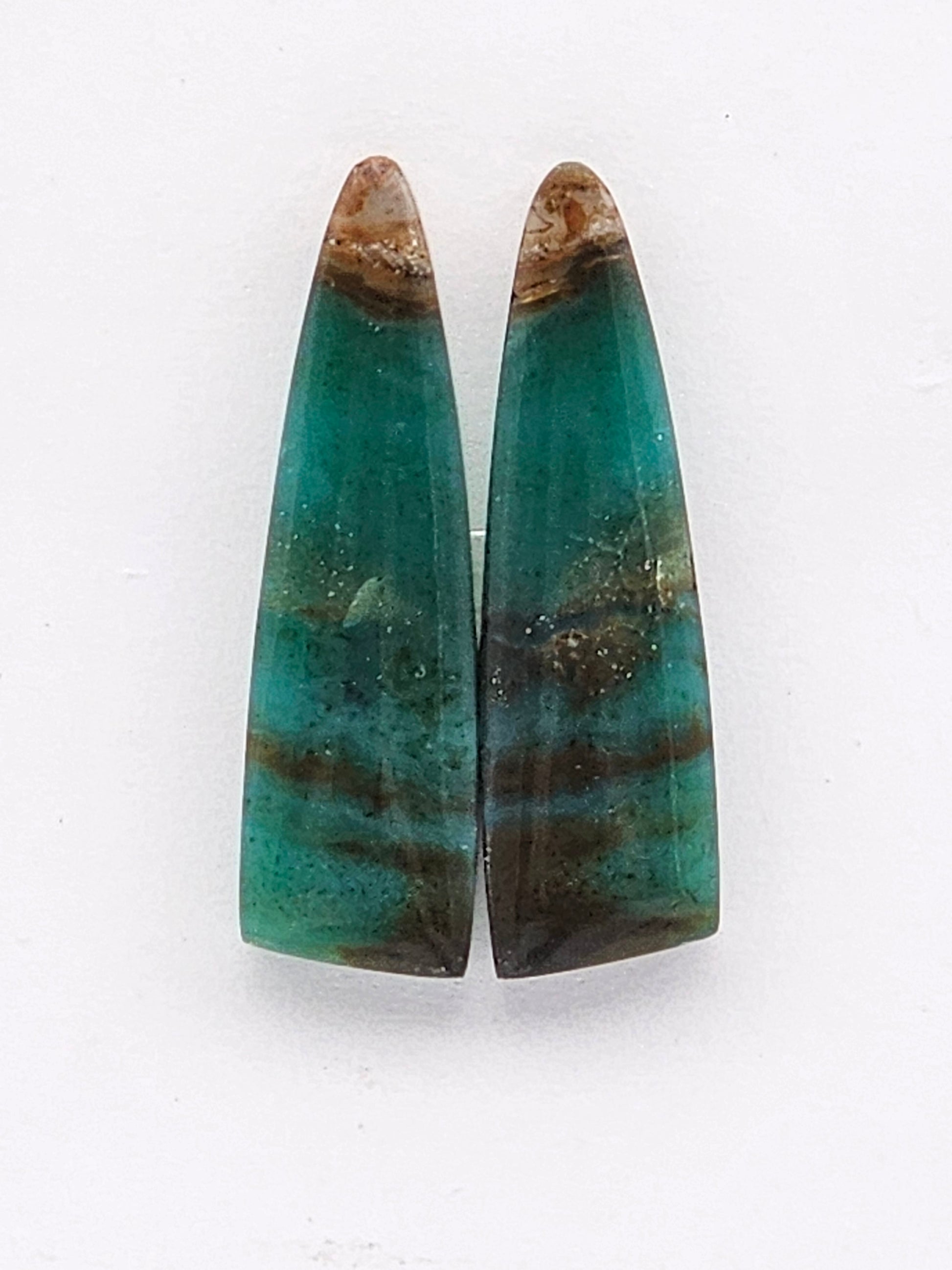 Natural untreated and unbacked semi-precious designer cabochon. Blue opalized wood pair material from Indonesia. Rare, unique, natural and vibrant, making them an ideal choice for elegant earrings, pendants, or statement pieces.