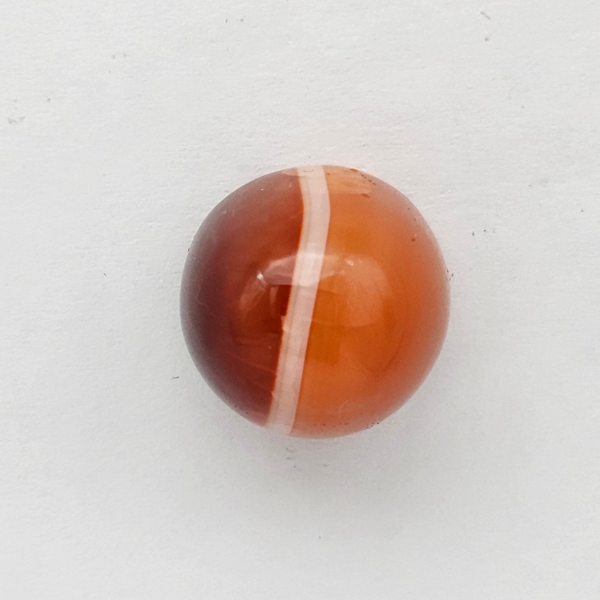 This charming Carnelian Agate Cabochon features a unique round high dome shape with vibrant bands of warm colors. Its smooth surface and polished finish make it perfect for creating eye-catching jewelry or decorative pieces. Ideal for pendants or brooches, this cabochon adds a bold touch to any design. Enhance your collection with this beautiful piece!