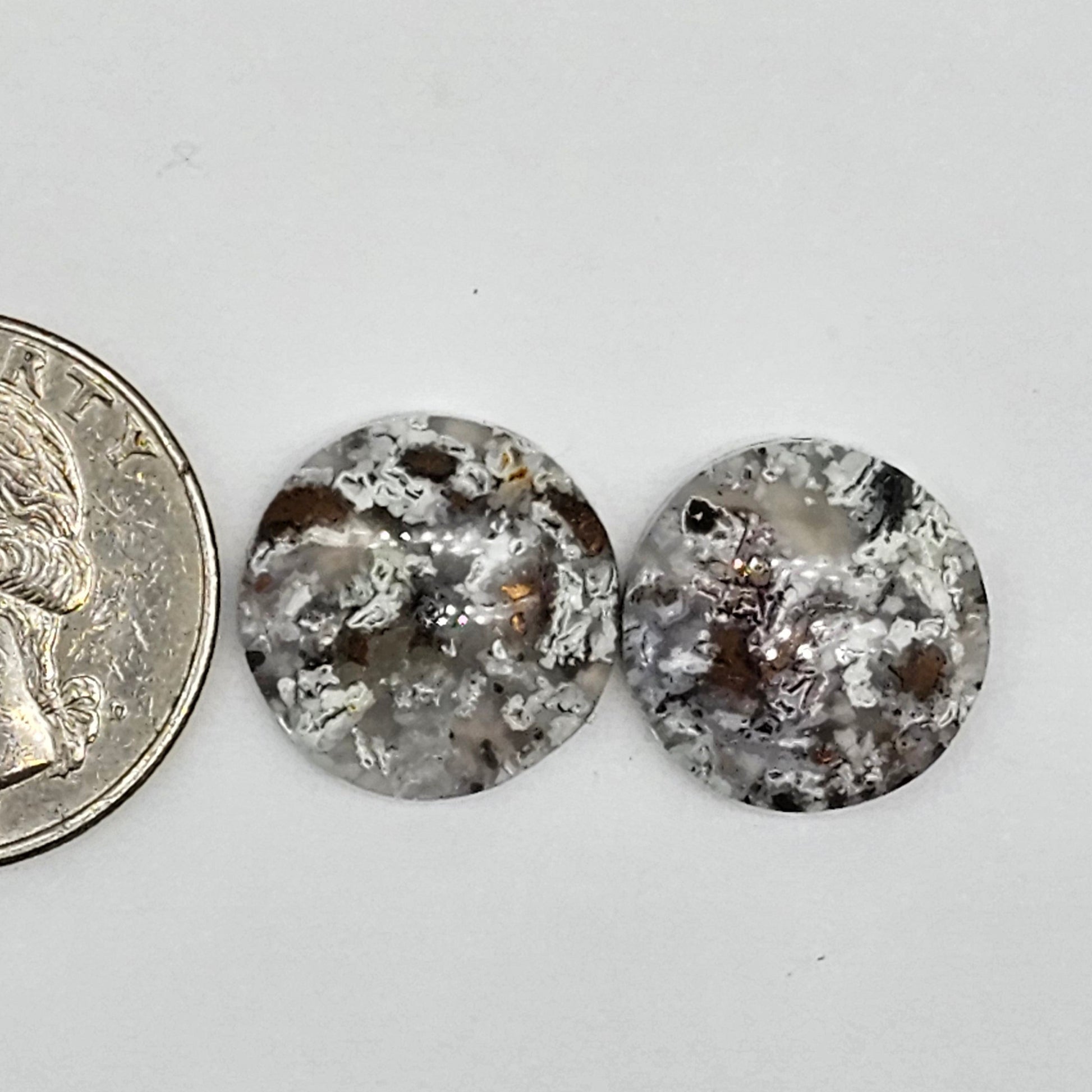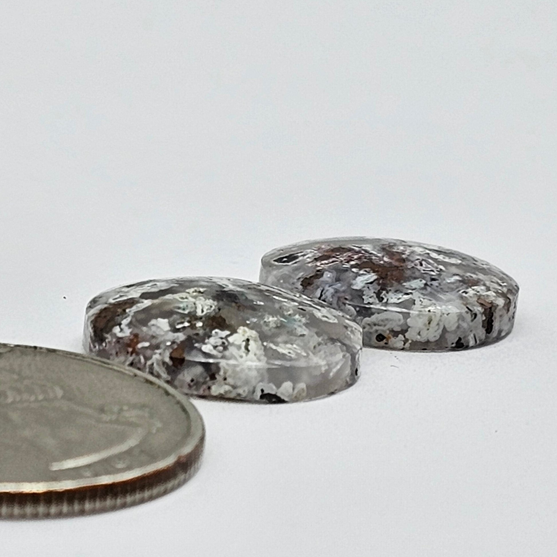 This stunning pair of Chalcedony Cabochons features a beautiful blend of soft hues with sparkling native copper inclusions. Their smooth, round shapes make them ideal for creating unique jewelry pieces like earrings or pendants. Each cabochon showcases distinct patterns, adding charm and elegance to your collection. Enhance your designs with this captivating pair!