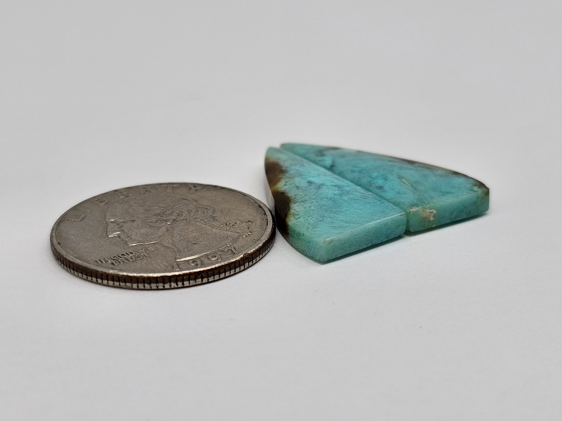 This exquisite cabochon pair showcases a refreshing blend of vibrant blue hues accented with earthy golden tones and intricate natural patterns. The elongated, tapered design makes this stones ideal for earrings, pendants, or other custom jewelry creations. Polished to highlight their unique character, these cabochons bring a touch of natural beauty and elegance to any design.