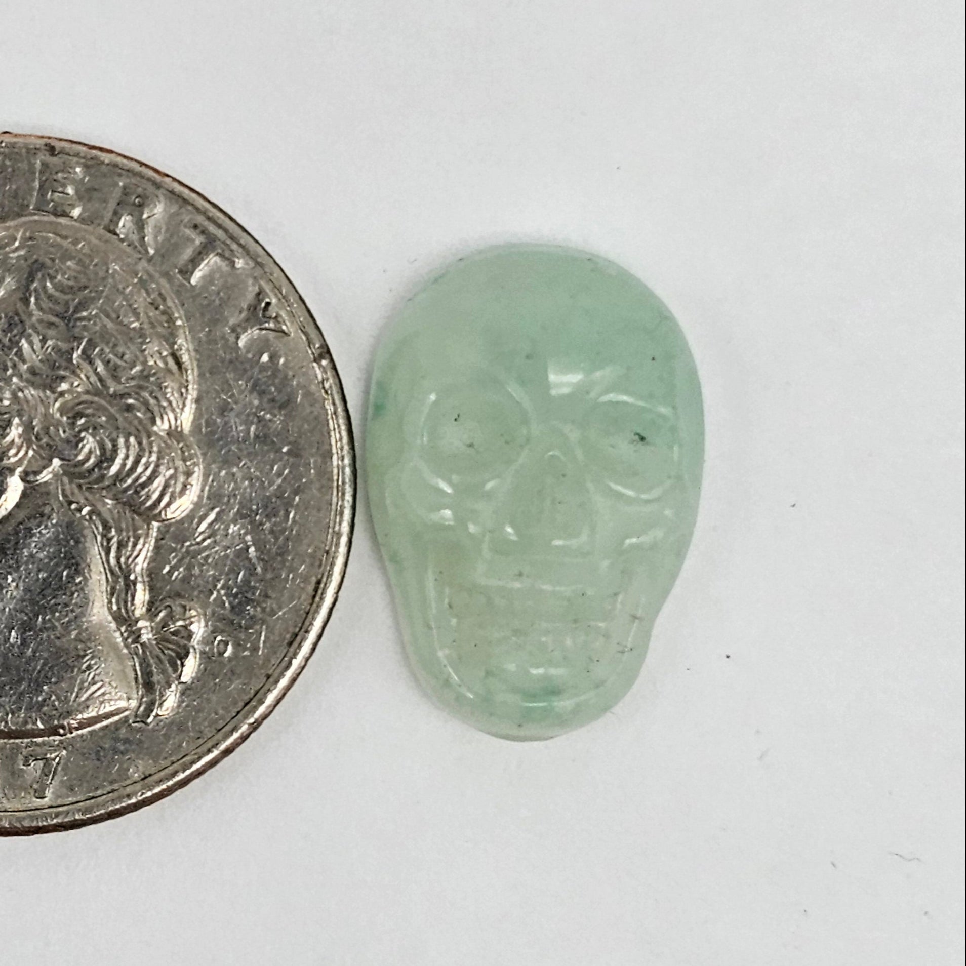 This unique Chrysoprase Cabochon is carved into the shape of a skull, showcasing a soft green color with a smooth finish. Its detailed design makes it perfect for creating distinctive jewelry or decorative pieces. This cabochon adds a playful yet elegant touch to any collection. Enhance your designs with this captivating skull piece!