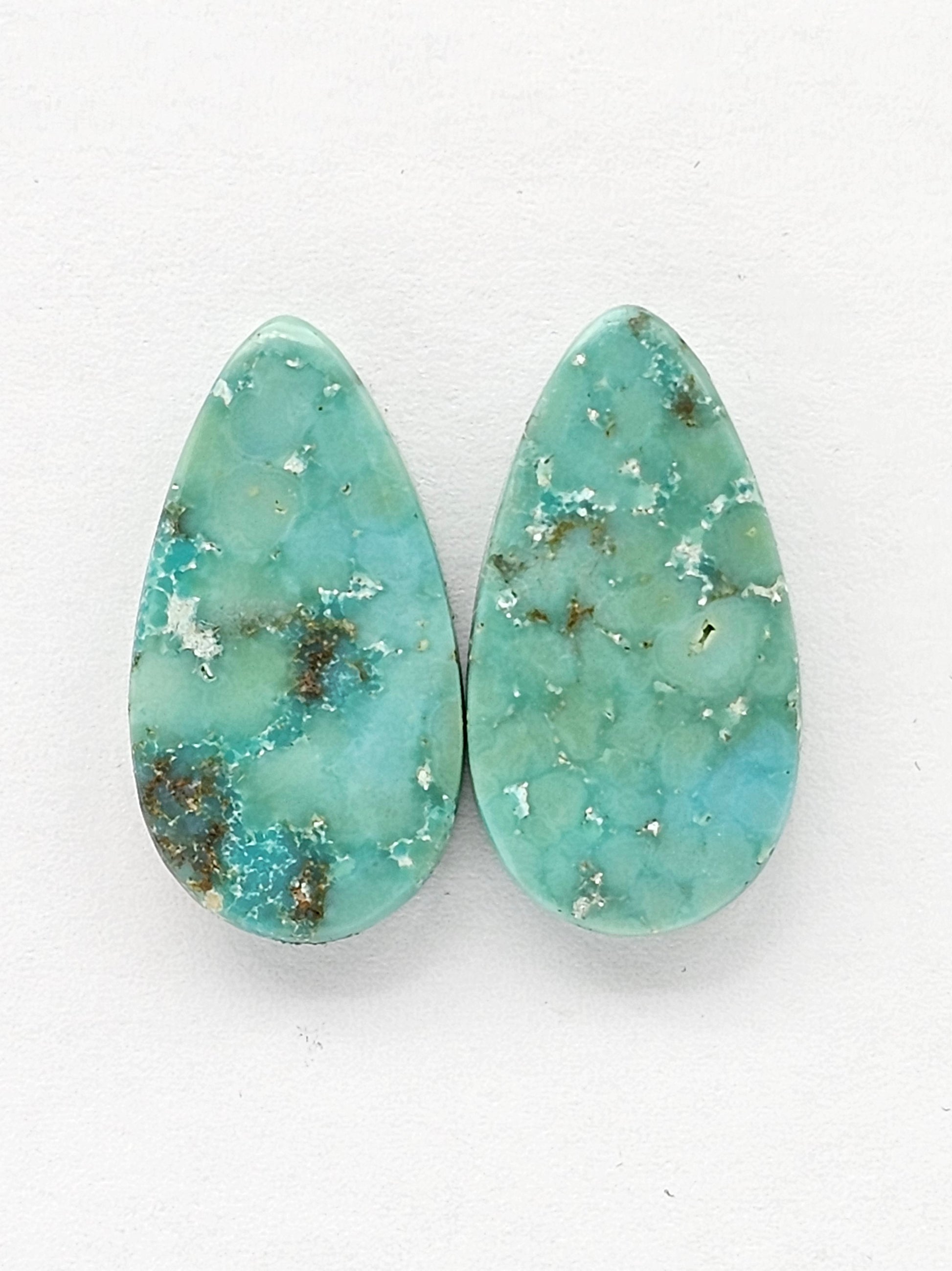 This pair of turquoise cabochons features a stunning mix of vibrant blues, earthy browns, and bold black patterns. Known for its unique matrix and rich colors, Cloud Mountain Turquoise adds a touch of natural beauty to any jewelry design. Perfect for creating one-of-a-kind statement pieces.