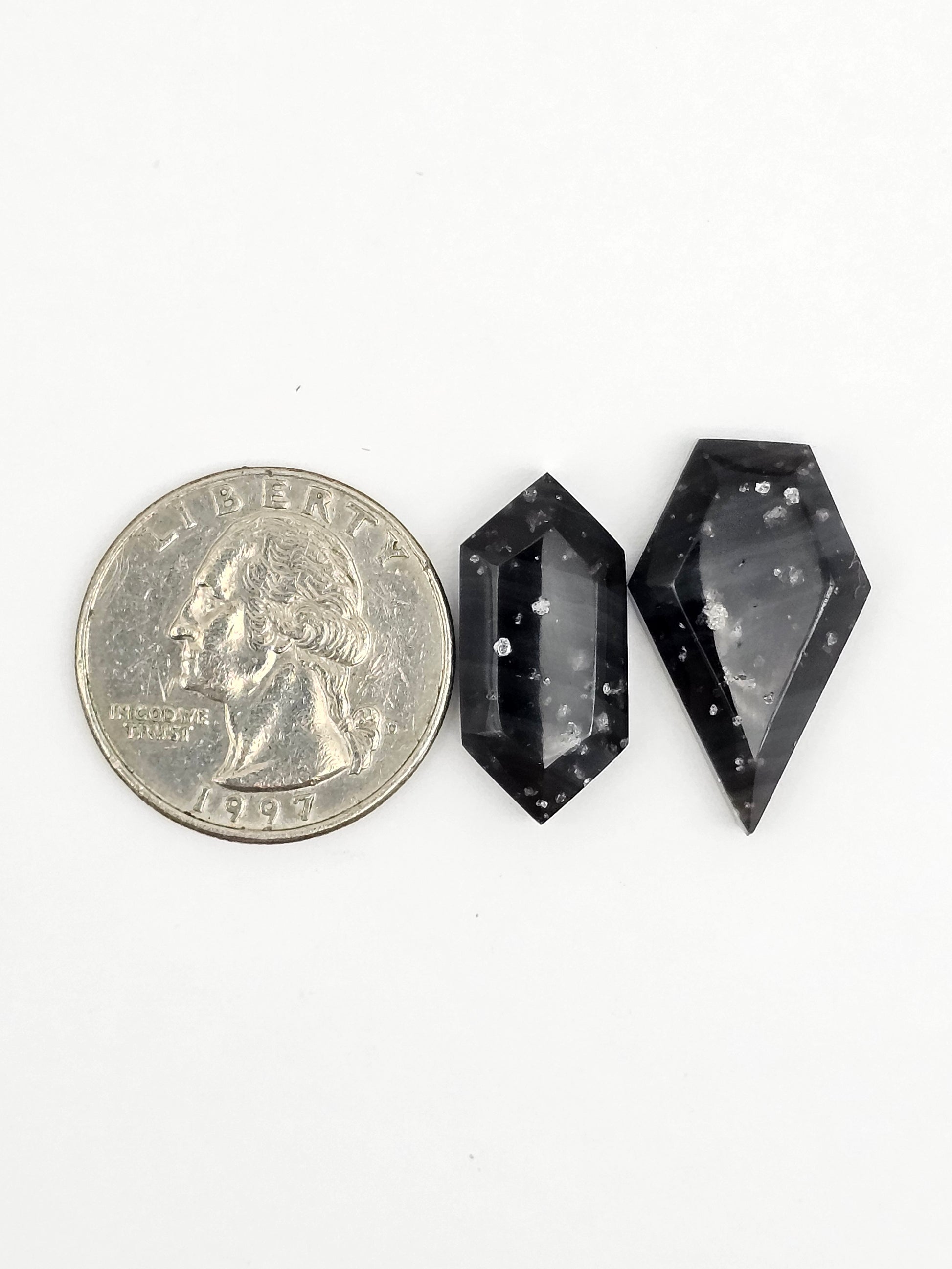 This galaxy obsidian cabochon set features two stunning pieces that capture the beauty of the universe. Each cabochon displays a rich black color with shimmering flecks resembling distant stars. Perfect for jewelry making or crafts, these pieces add a unique touch to any design. Their smooth finish enhances their natural elegance, making them a must-have for collectors and artisans alike. Elevate your creations with this charming set!