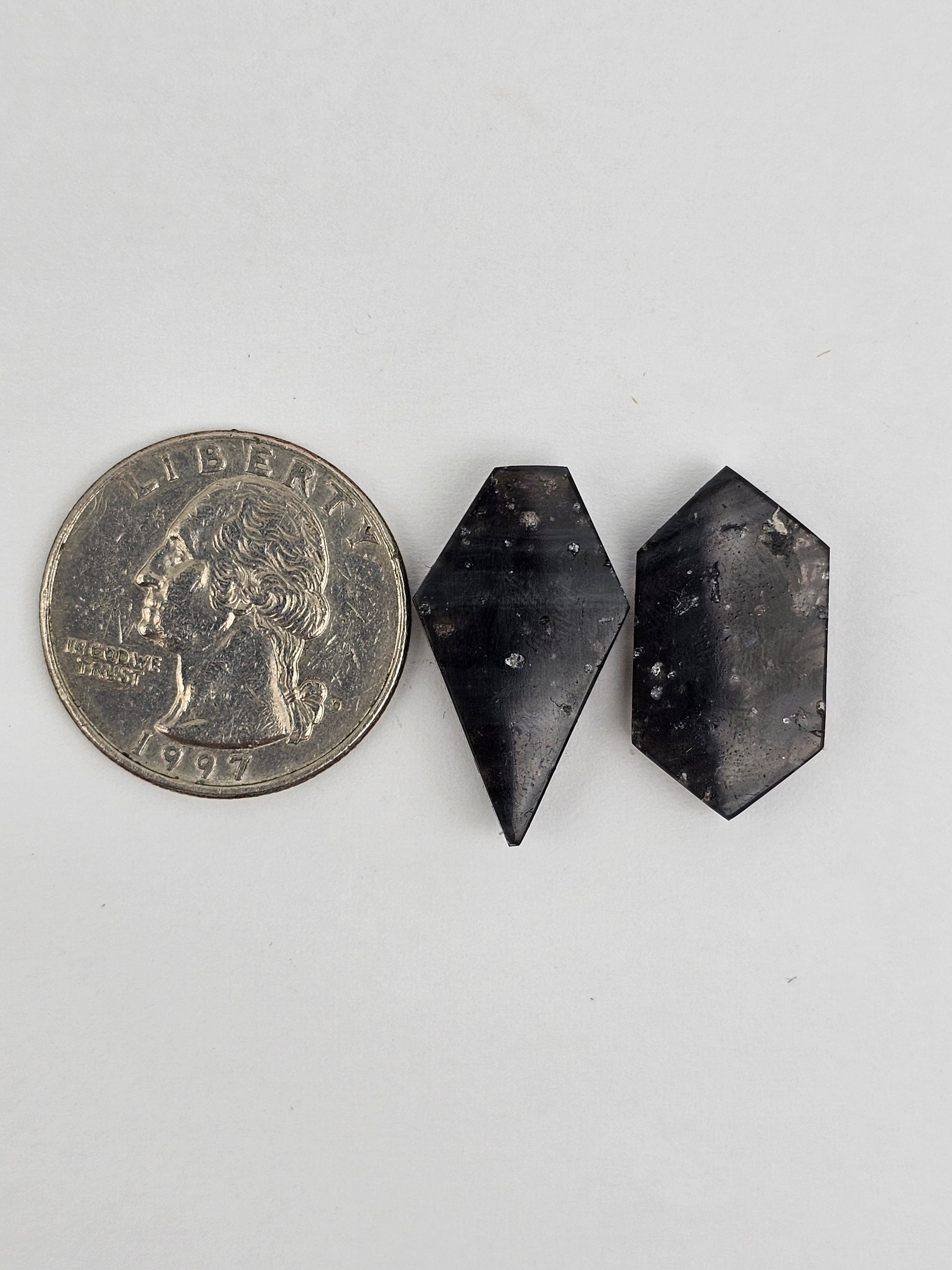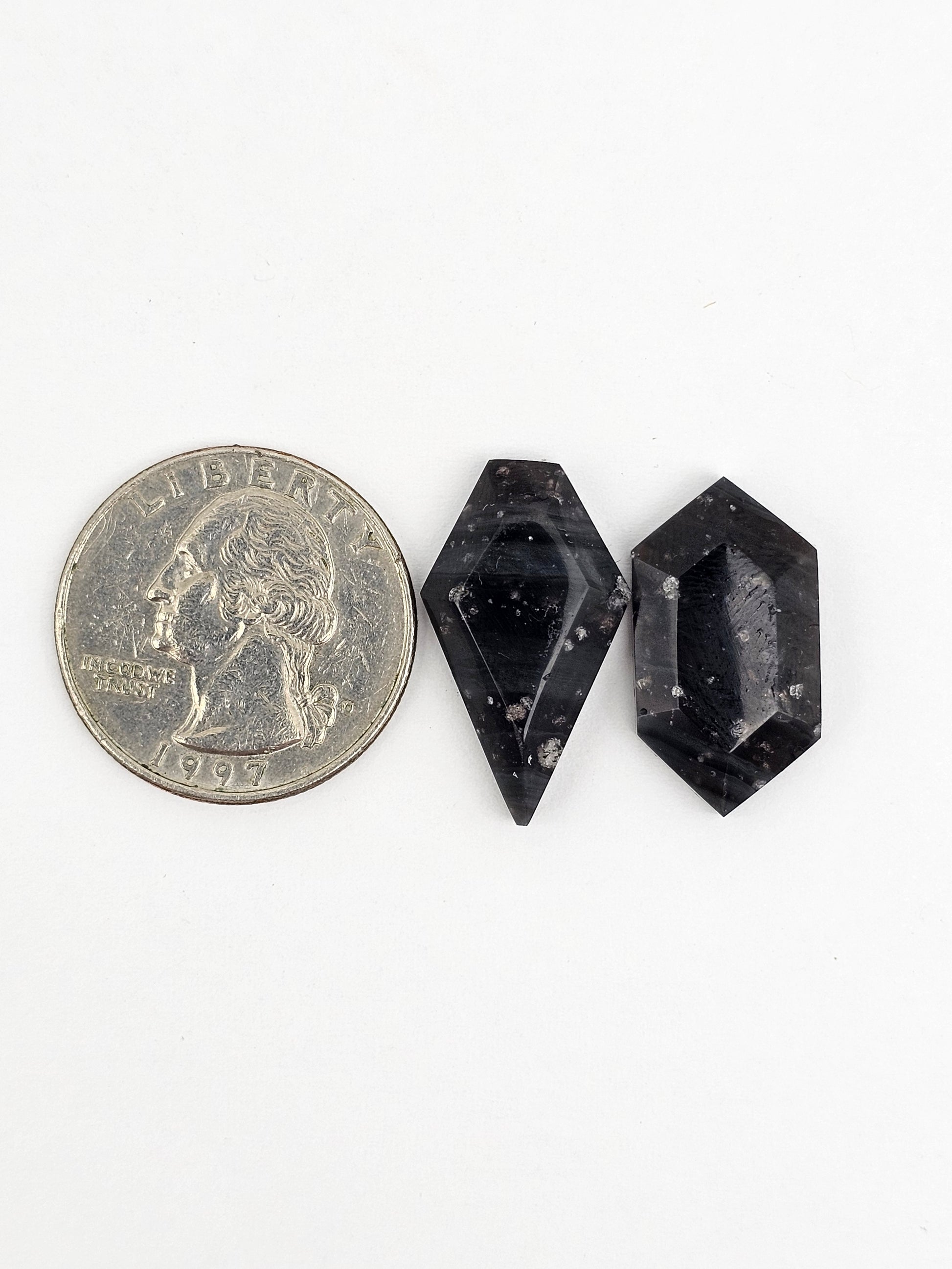 This galaxy obsidian cabochon set features two stunning pieces that capture the beauty of the universe. Each cabochon displays a rich black color with shimmering flecks resembling distant stars. Perfect for jewelry making or crafts, these pieces add a unique touch to any design. Their smooth finish enhances their natural elegance, making them a must-have for collectors and artisans alike. Elevate your creations with this charming set!