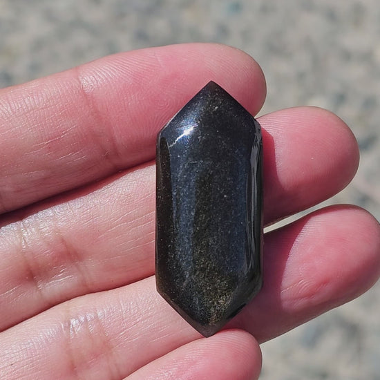 This striking Golden Obsidian Cabochon features a polished surface that showcases shimmering golden flecks against a deep black background. Its unique geometric shape makes it perfect for creating bold jewelry pieces or decorative accents. Ideal for pendants or rings, this cabochon adds a touch of elegance and intrigue to any design. Enhance your collection with this captivating piece!