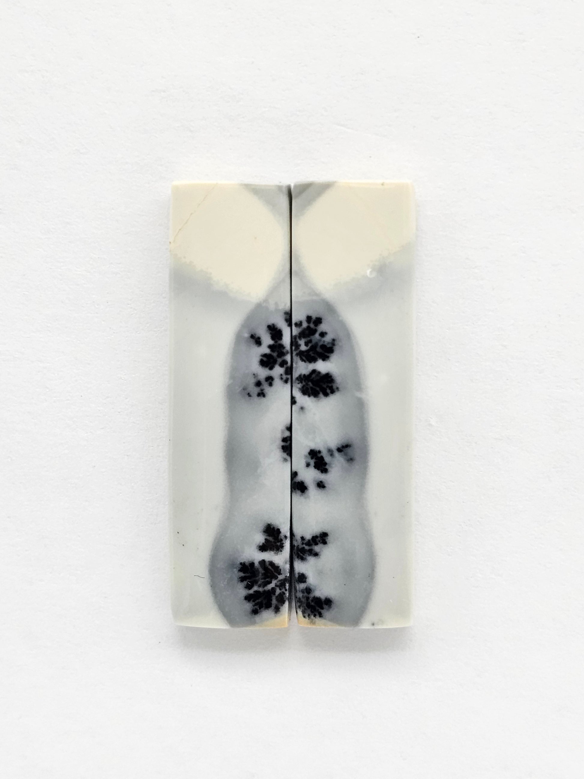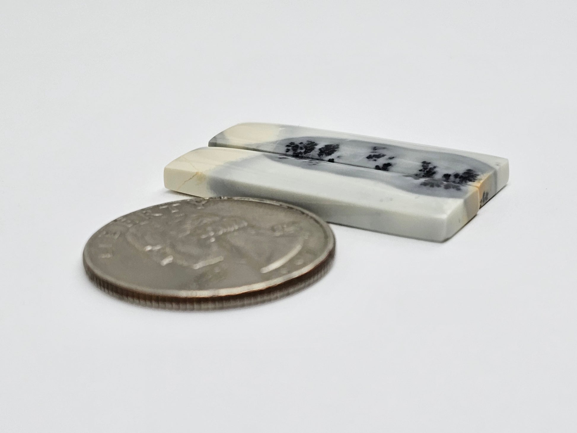 This matched pair of Maligano jasper cabochons showcases stunning natural patterns. Each piece features a mix of soft creams, bold blacks, and speckled grays. Perfect for jewelry making or collecting. These are ready to set and will add a one-of-a-kind touch to your creations.