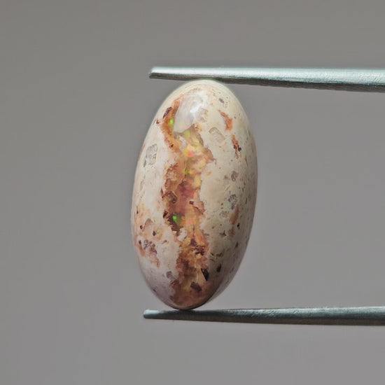 This stunning cabochon showcases a natural piece of Mexican Cantera opal, known for its unique patterns and subtle colors. The smooth finish highlights the stone's beauty, making it perfect for custom jewelry. Each piece is one of a kind, adding a special touch to your collection. Enhance your collection with this captivating piece!
