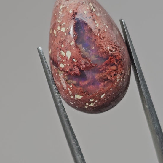 This natural Mexican Cantera opal claw or fang shaped cabochon showcases soft earthy tones, natural inclusions, and flashes created by ancient volcanic activity. Formed when silica-rich water settled into rhyolite, each stone is completely unique. Ethically sourced from lapidary families in Mexico and hand-cut to highlight its natural patterning, this cabochon is ideal for one-of-a-kind, intentional jewelry designs.