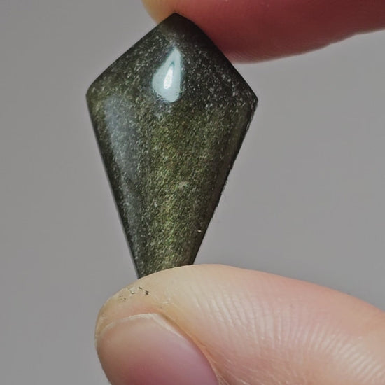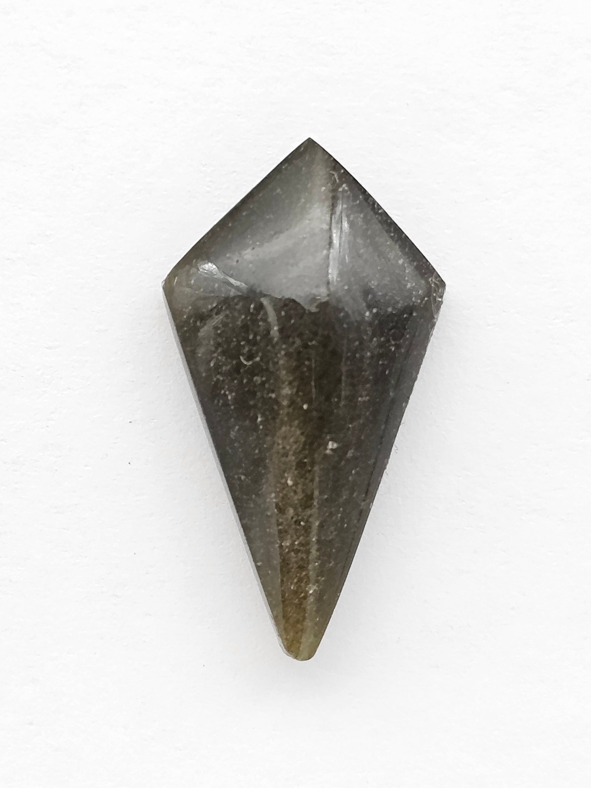 This obsidian cabochon is shaped into a long diamond, highlighting the stone’s deep black tone and subtle sheen. Its sleek, angular form gives it a refined yet powerful presence. Known for grounding and protection, obsidian brings both beauty and strength to any custom jewelry design. Enhance your collection with this captivating piece!