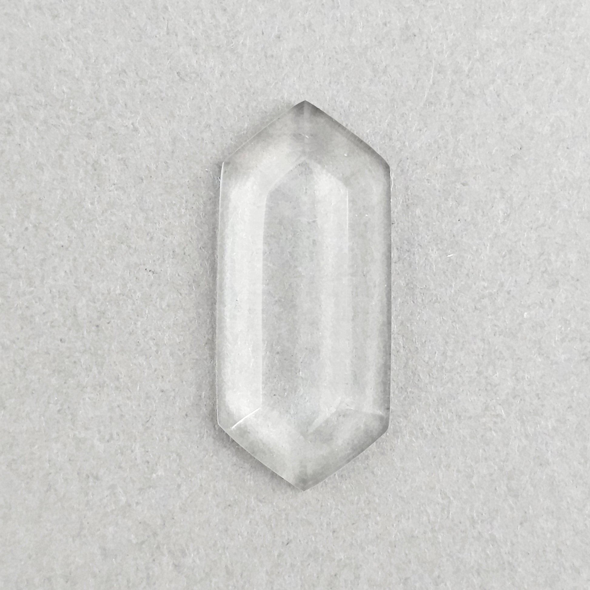 This beautiful Quartz Silica Cabochon features a long hexagon shape with a clear, sparkling surface. Its unique design and clarity make it perfect for crafting eye-catching jewelry pieces. Ideal for pendants or decorative items, this cabochon adds a touch of elegance to any collection. Enhance your designs with this stunning natural stone!