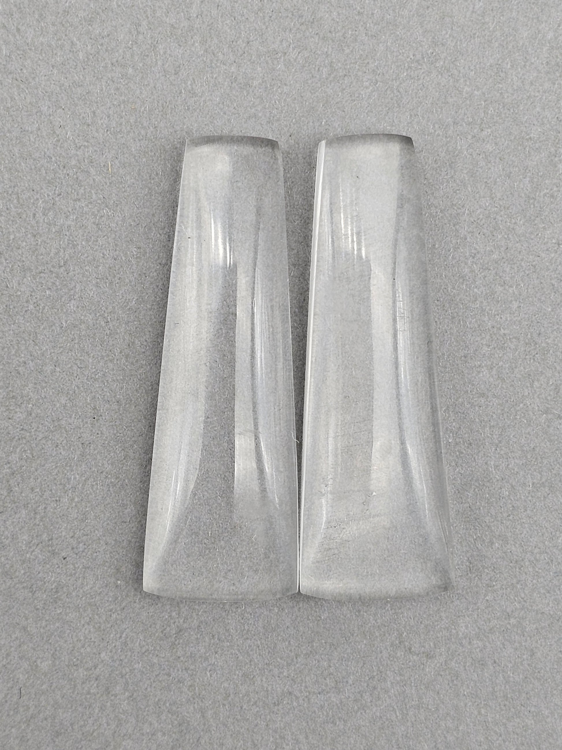 This elegant pair of Quartz Geometric Cabochons features a sleek, modern design with clear, polished surfaces. Their unique shape makes them ideal for creating contemporary jewelry pieces like earrings or pendants. Each cabochon captures light beautifully, adding a touch of sophistication to any design. Elevate your collection with this stunning pair!