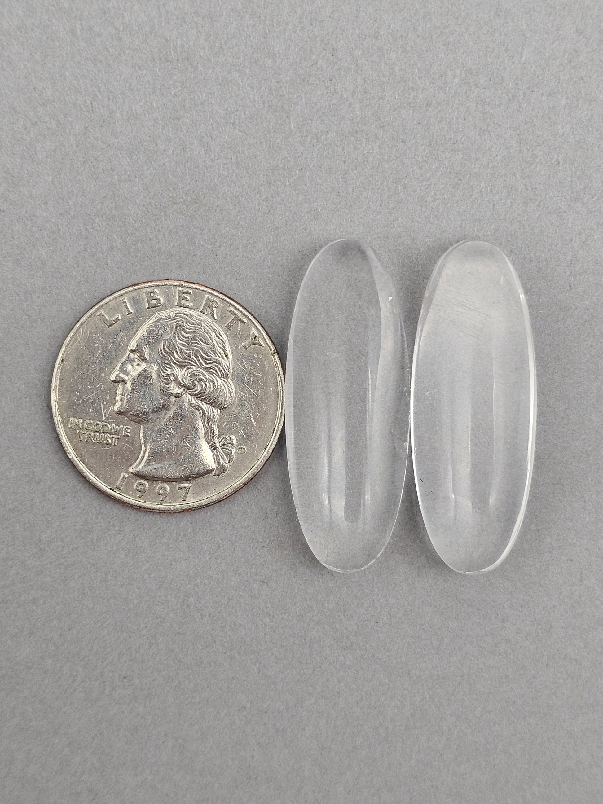 This elegant pair of Quartz Geometric Cabochons features a sleek, modern design with clear, polished surfaces. Their unique shape makes them ideal for creating contemporary jewelry pieces like earrings or pendants. Each cabochon captures light beautifully, adding a touch of sophistication to any design. Elevate your collection with this stunning pair!