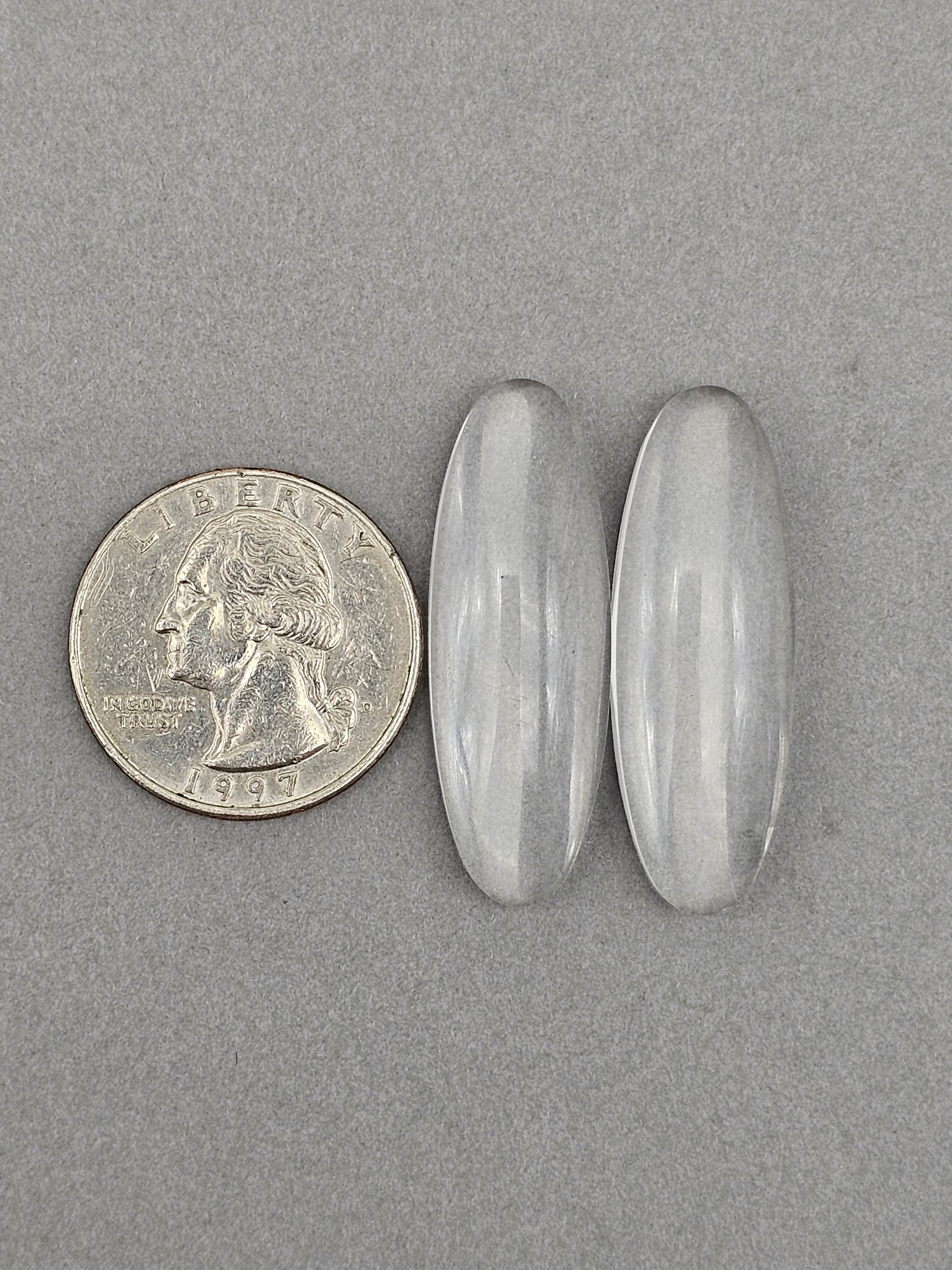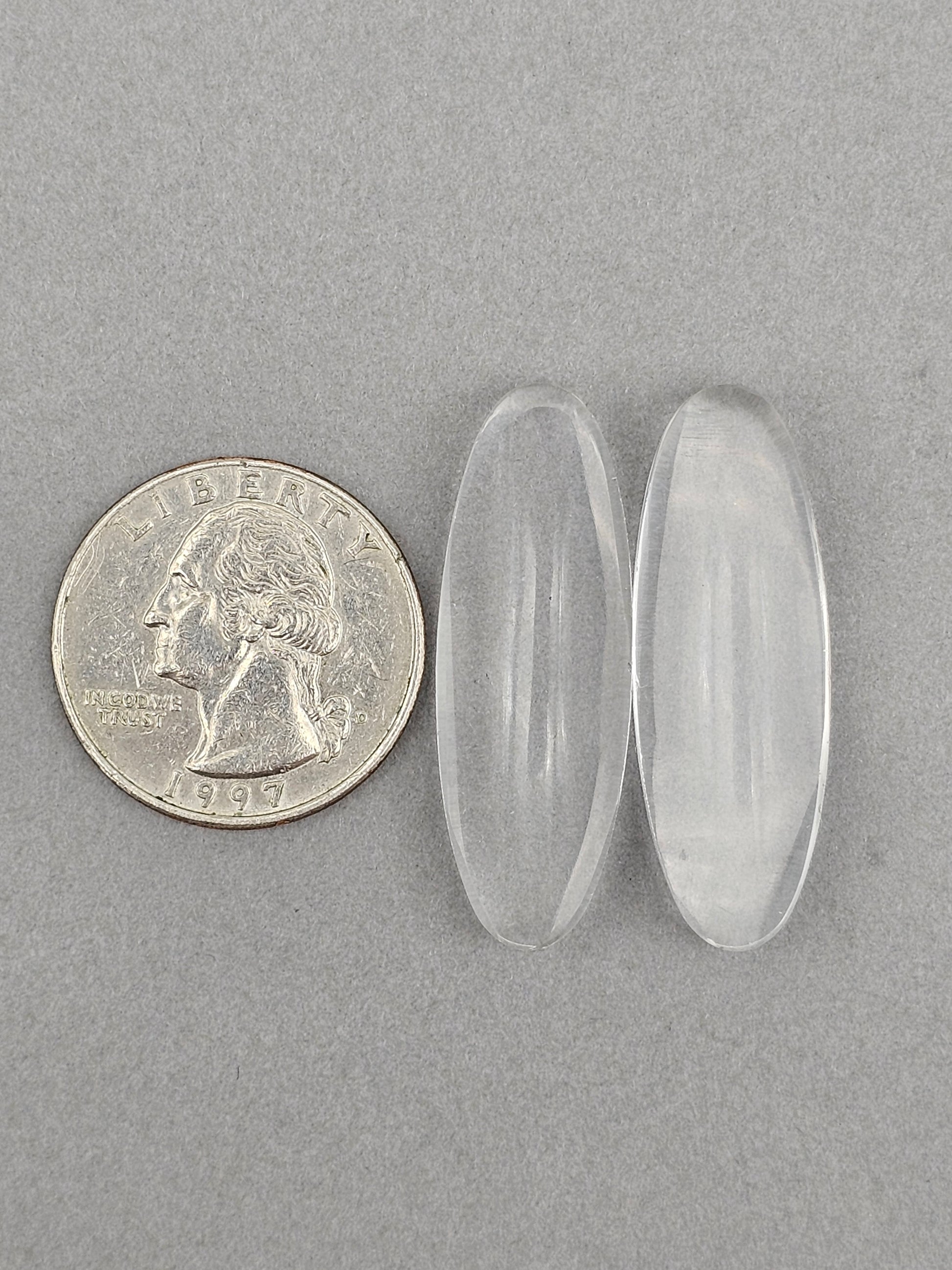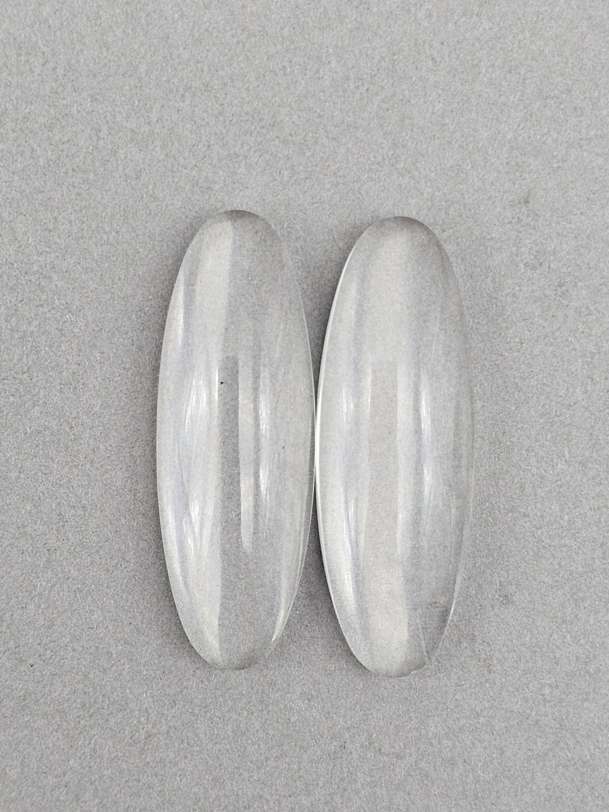 This elegant pair of Quartz Geometric Cabochons features a sleek, modern design with clear, polished surfaces. Their unique shape makes them ideal for creating contemporary jewelry pieces like earrings or pendants. Each cabochon captures light beautifully, adding a touch of sophistication to any design. Elevate your collection with this stunning pair!