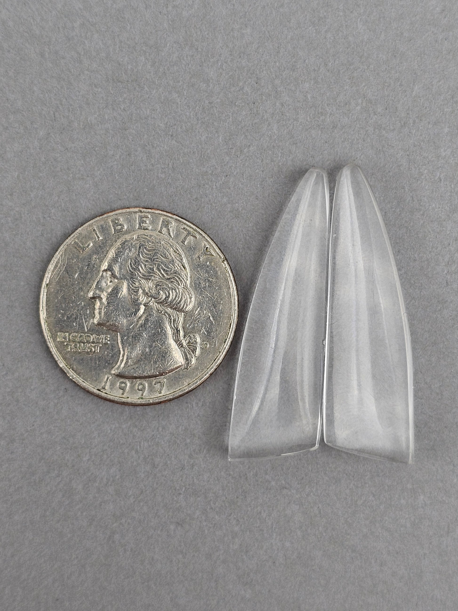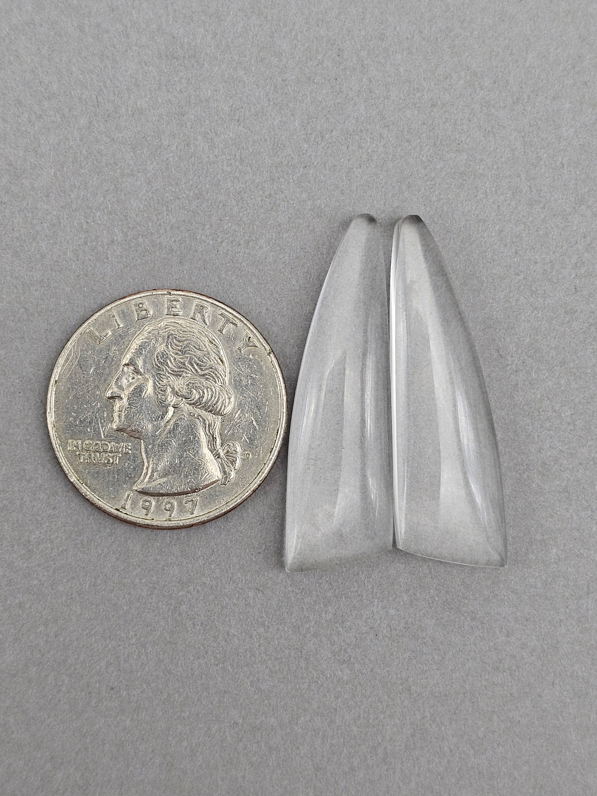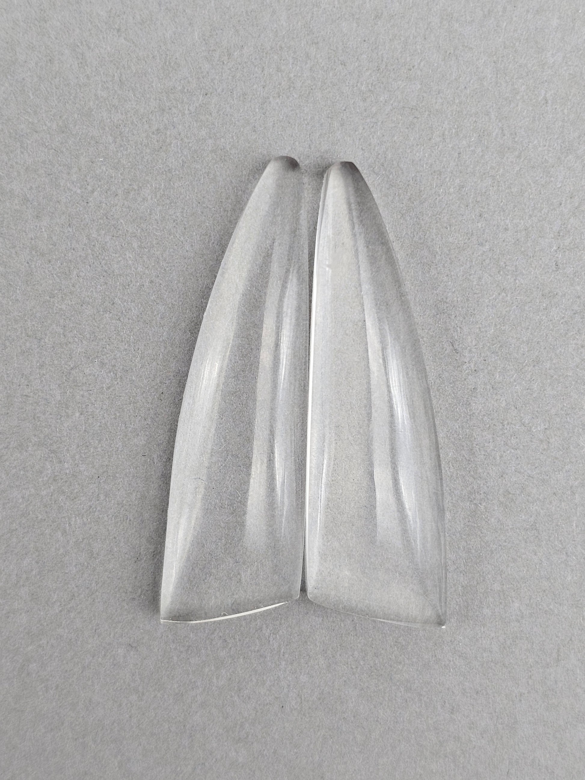 This elegant pair of Quartz Geometric Cabochons features a sleek, modern design with clear, polished surfaces. Their unique shape makes them ideal for creating contemporary jewelry pieces like earrings or pendants. Each cabochon captures light beautifully, adding a touch of sophistication to any design. Elevate your collection with this stunning pair!