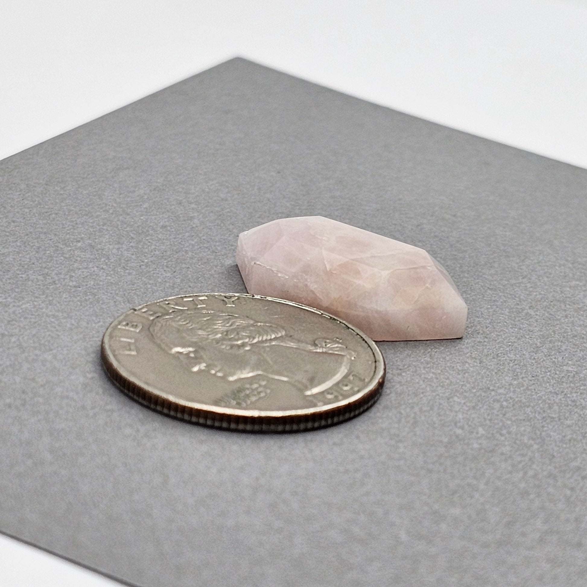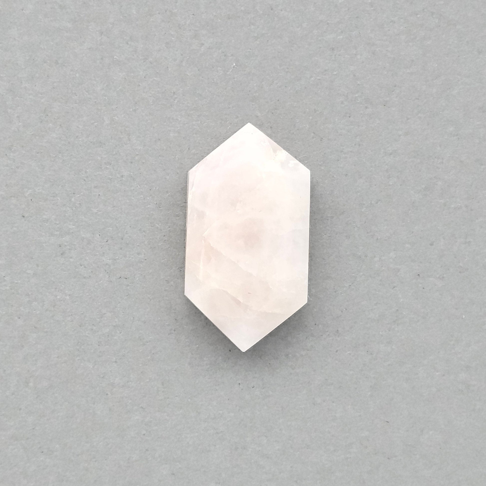 This elegant Rose Quartz Cabochon features a unique geometric shape with a soft, translucent pink and white colors. Its smooth surface and polished finish make it perfect for creating stunning jewelry pieces or decorative accents. Ideal for pendants or brooches, this cabochon adds a touch of sophistication to any design. Enhance your collection with this beautiful piece!