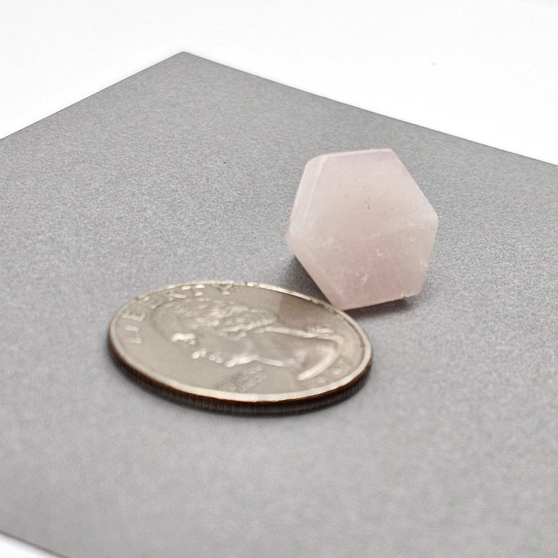 This elegant Rose Quartz Cabochon features a unique geometric shape with a soft, translucent pink and white colors. Its smooth surface and polished finish make it perfect for creating stunning jewelry pieces or decorative accents. Ideal for pendants or brooches, this cabochon adds a touch of sophistication to any design. Enhance your collection with this beautiful piece!