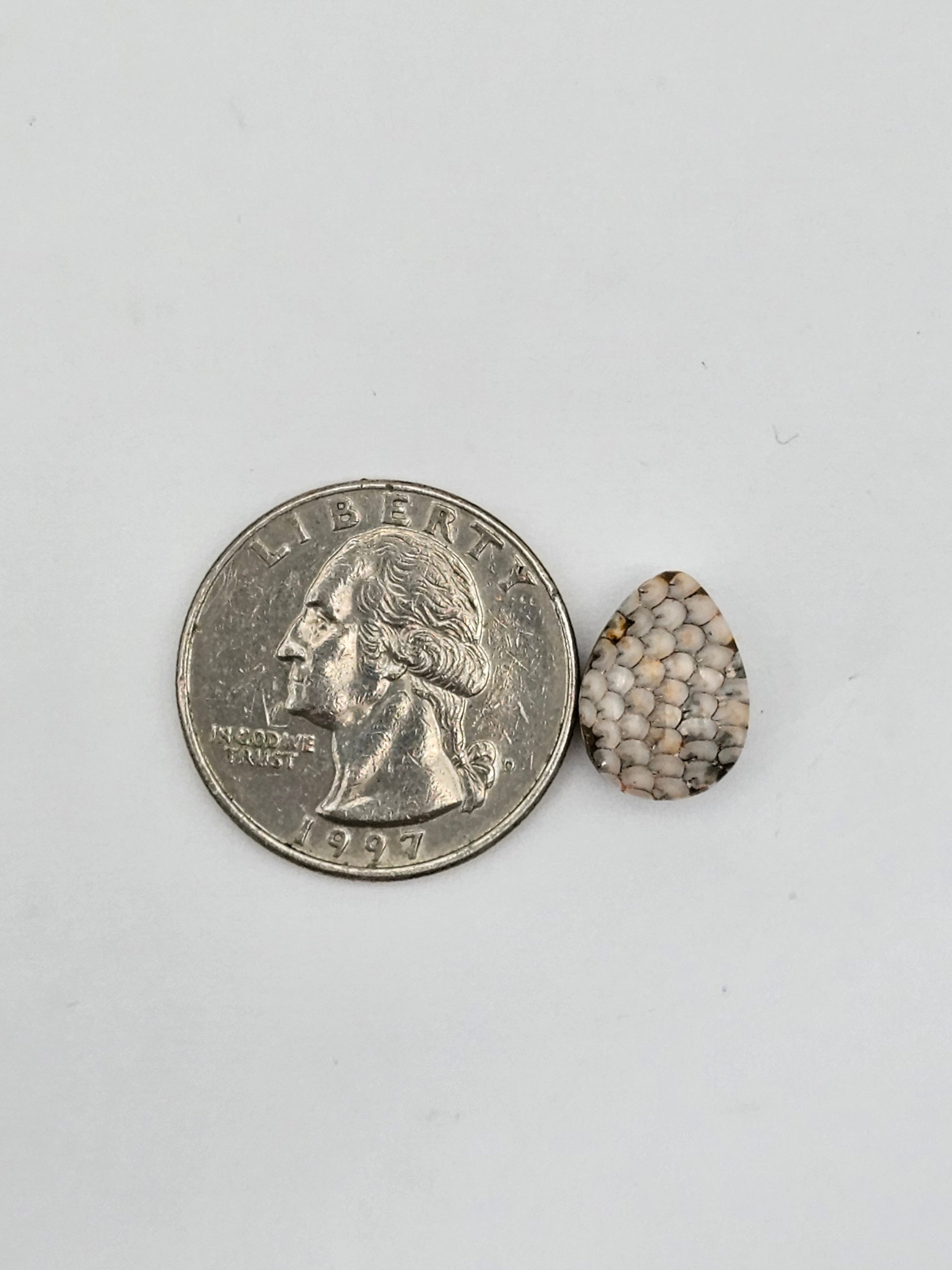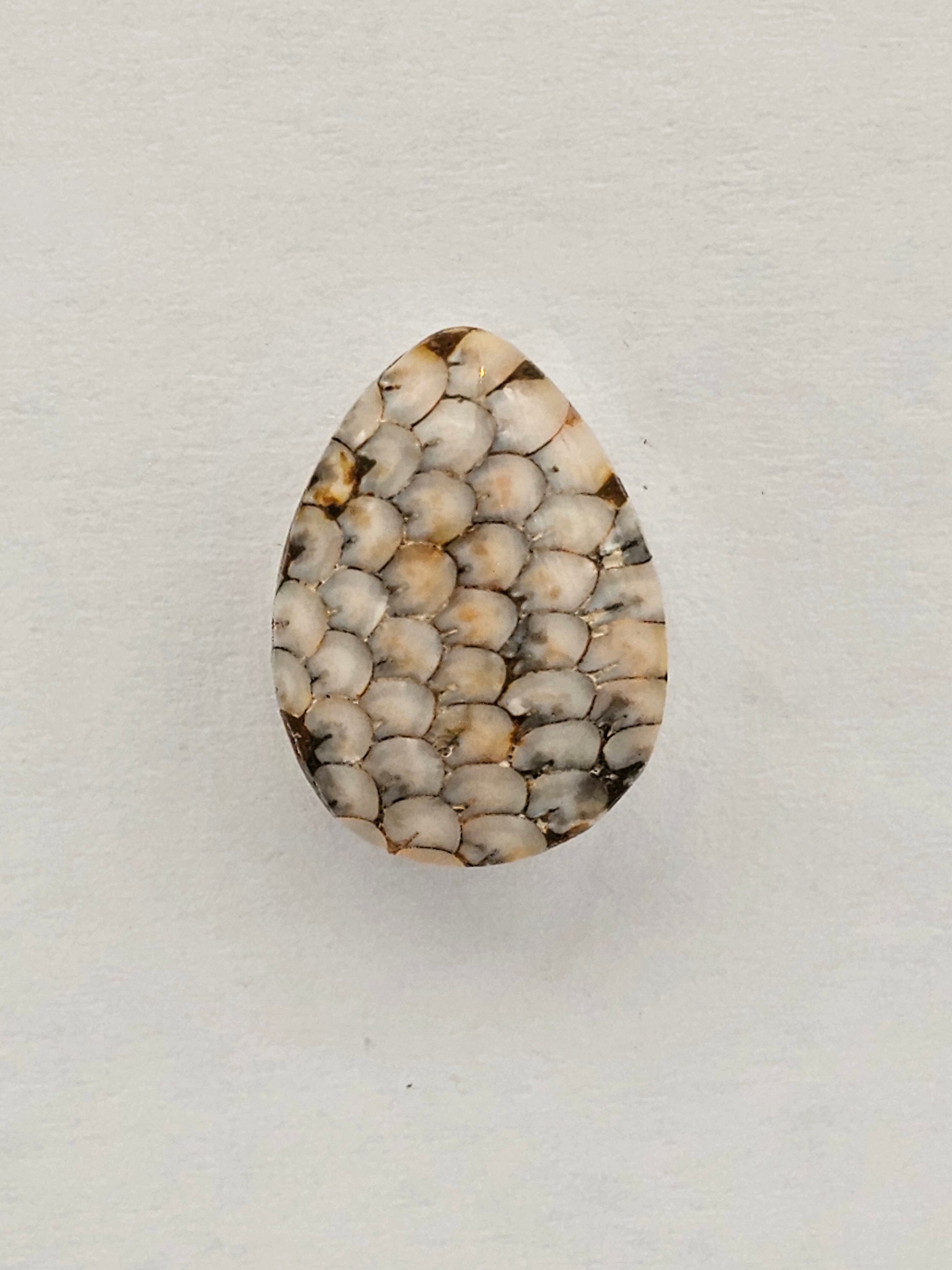 This stunning snake agate cabochon is made from natural snake agate, with fossilized shell patterns in black, brown, and white. Each piece is unique, formed by nature over time. Snake agate is valued for its grounding energy and unique natural beauty. Perfect for pendants or collectible pieces, it brings a touch of nature to your jewelry designs. Elevate your creations with this beautiful, natural stone.