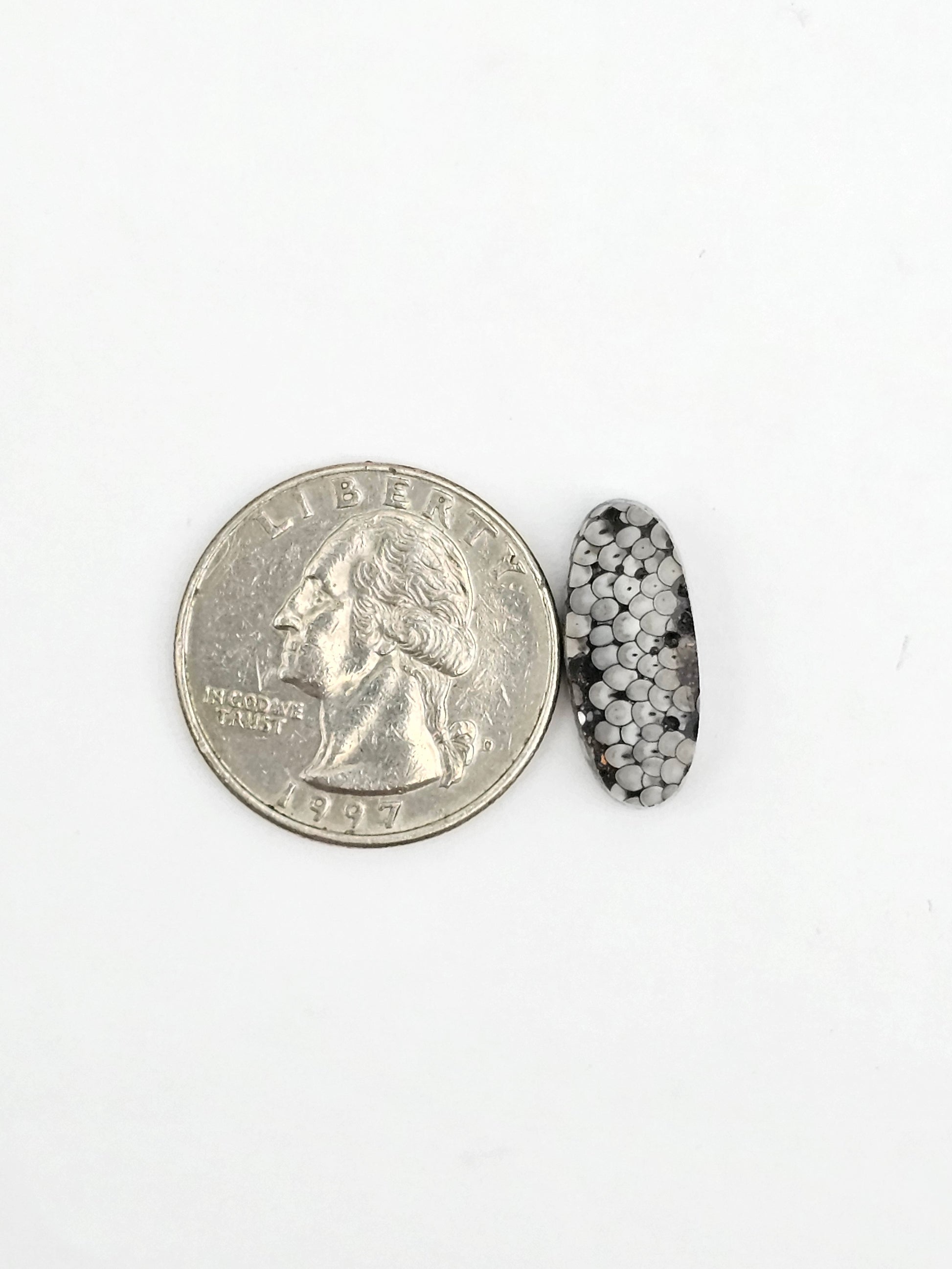 This stunning snake agate cabochon is made from natural snake agate, with fossilized shell patterns in black, brown, and white. Each piece is unique, formed by nature over time. Snake agate is valued for its grounding energy and unique natural beauty. Perfect for pendants or collectible pieces, it brings a touch of nature to your jewelry designs. Elevate your creations with this beautiful, natural stone.
