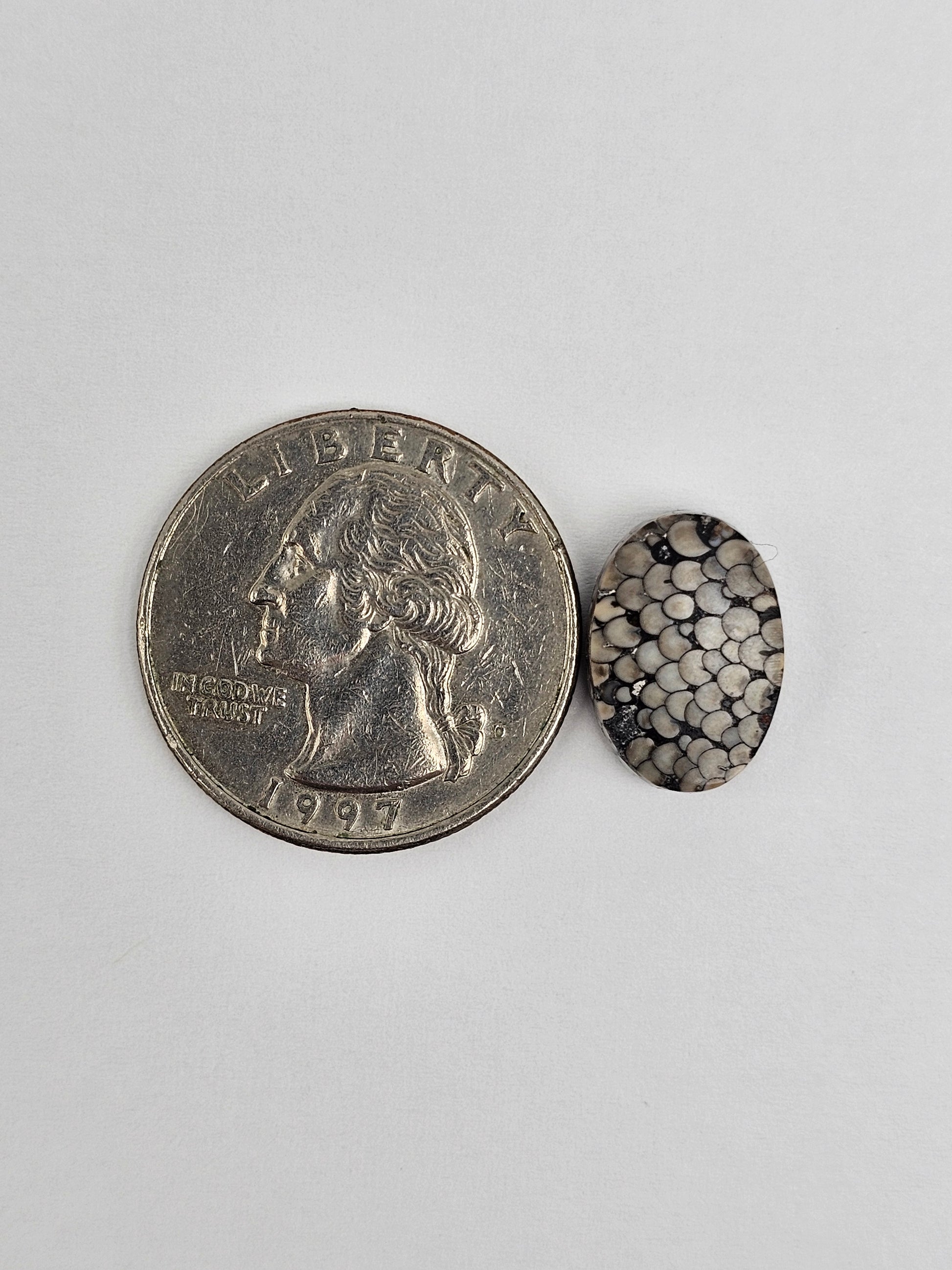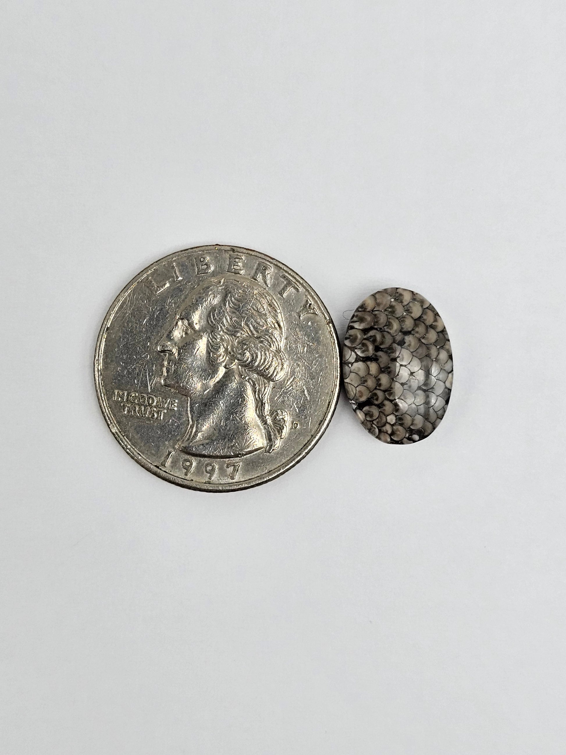 This stunning snake skin agate cabochon is made from natural snake skin agate, with fossilized shell patterns in black, brown, and white. Each piece is unique, formed by nature over time. Snake skin agate is valued for its grounding energy and unique natural beauty. Perfect for pendants or collectible pieces, it brings a touch of nature to your jewelry designs. Elevate your creations with this beautiful, natural stone.