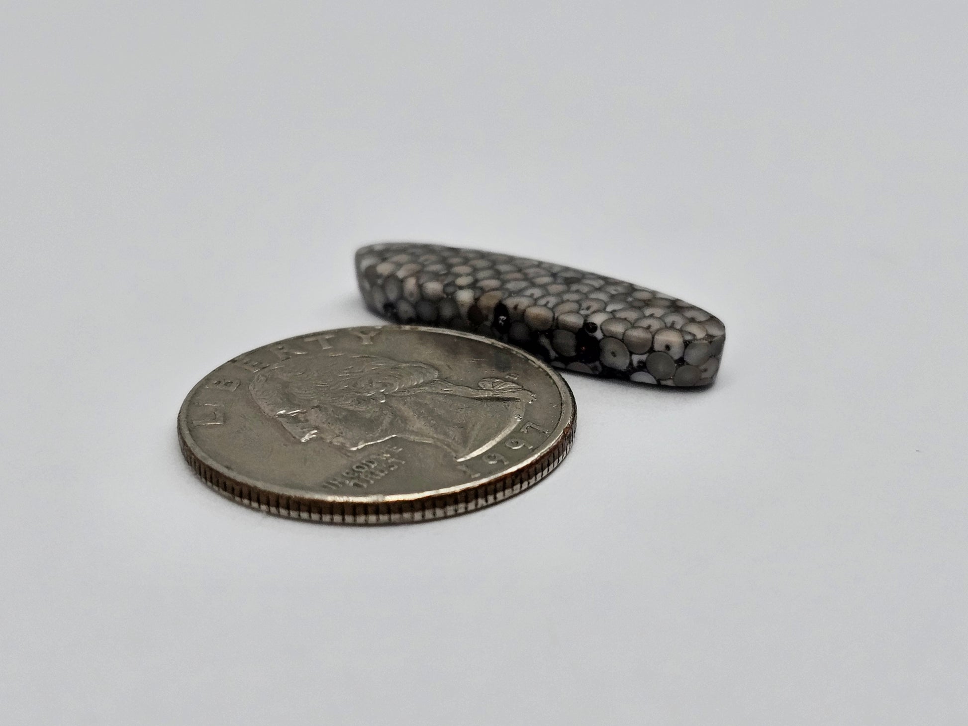 This stunning snake skin agate cabochon is made from natural snake skin agate, with fossilized shell patterns in black, brown, and white. Each piece is unique, formed by nature over time. Snake skin agate is valued for its grounding energy and unique natural beauty. Perfect for pendants or collectible pieces, it brings a touch of nature to your jewelry designs. Elevate your creations with this beautiful, natural stone.